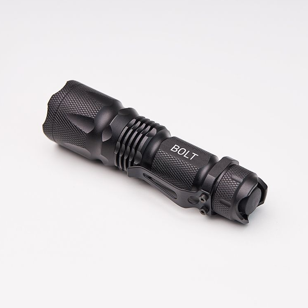 Produzida em alumínio e pesando apenas 65 gramas, a Bolt conta com proteção IP44 (proteção contra partículas sólidas maiores que 1 mm e respingo de água) e foco regulável com a função zoom. Ainda, acompanha carregador e Bateria Recarregável INVICTUS 14500. Se preferir, ela também com uma única bateria AA com uma autonomia de até 2 horas.