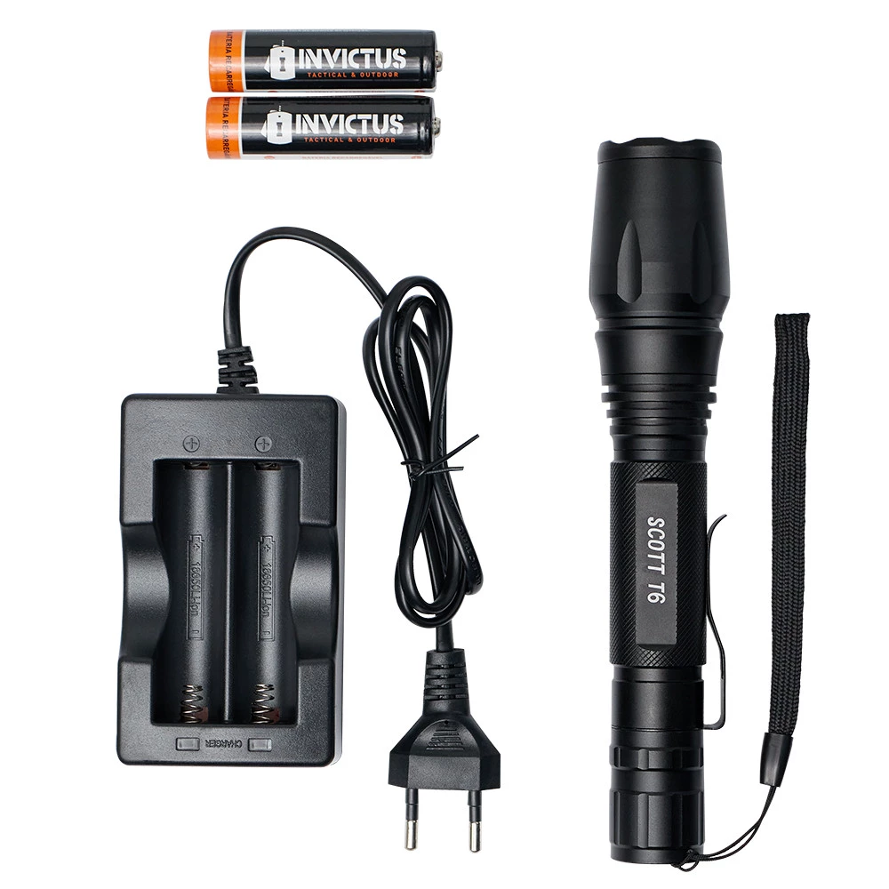 Lanterna Tática + 02 Baterias Recarregáveis 18650(2200 mAh)