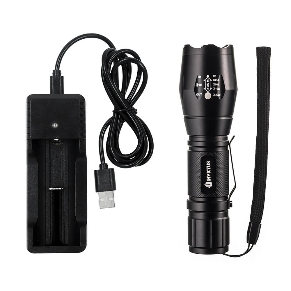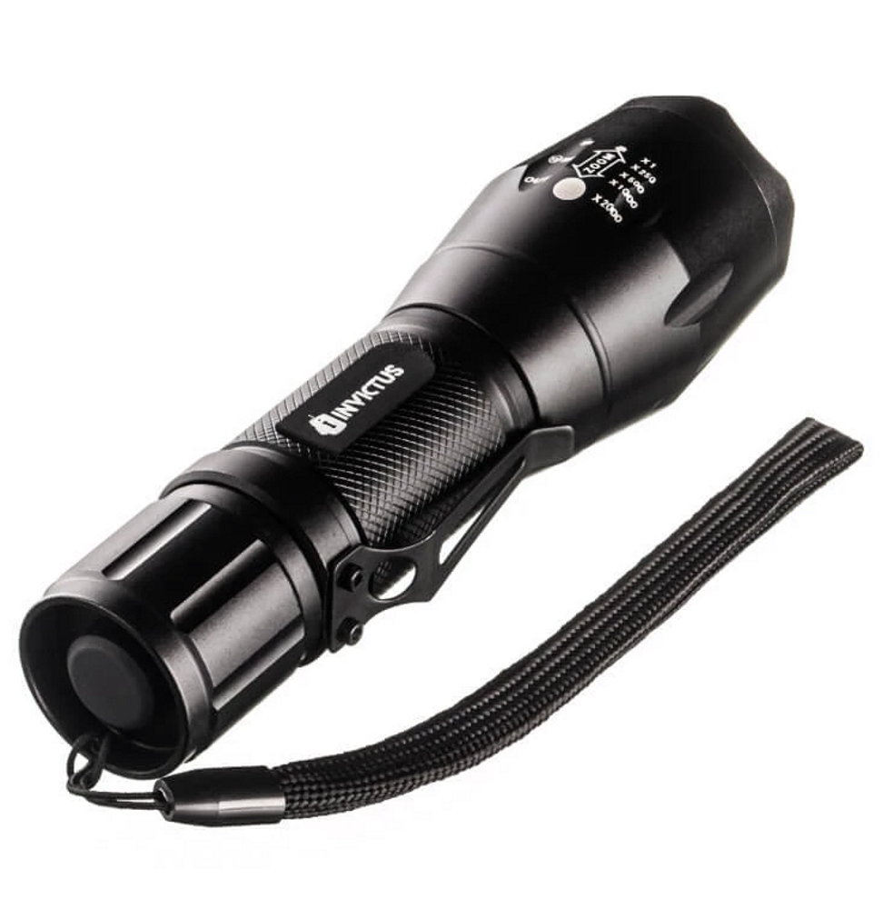 Não é à toa que o nome dessa lanterna tática é INVICTUS Storm T6. São 280 lumens de potência em 2 horas de autonomia e 5 funções. É tanta luz que, em modo “estrobo” - quando o led pisca intermitente para desorientar o alvo - a sensação é de uma verdadeira tempestade no horizonte.