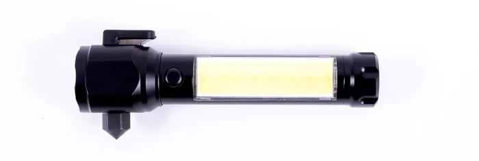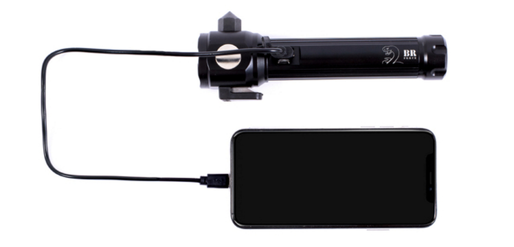 Recarregável, inclui bateria 18650 (800 mAh) e cabo USB