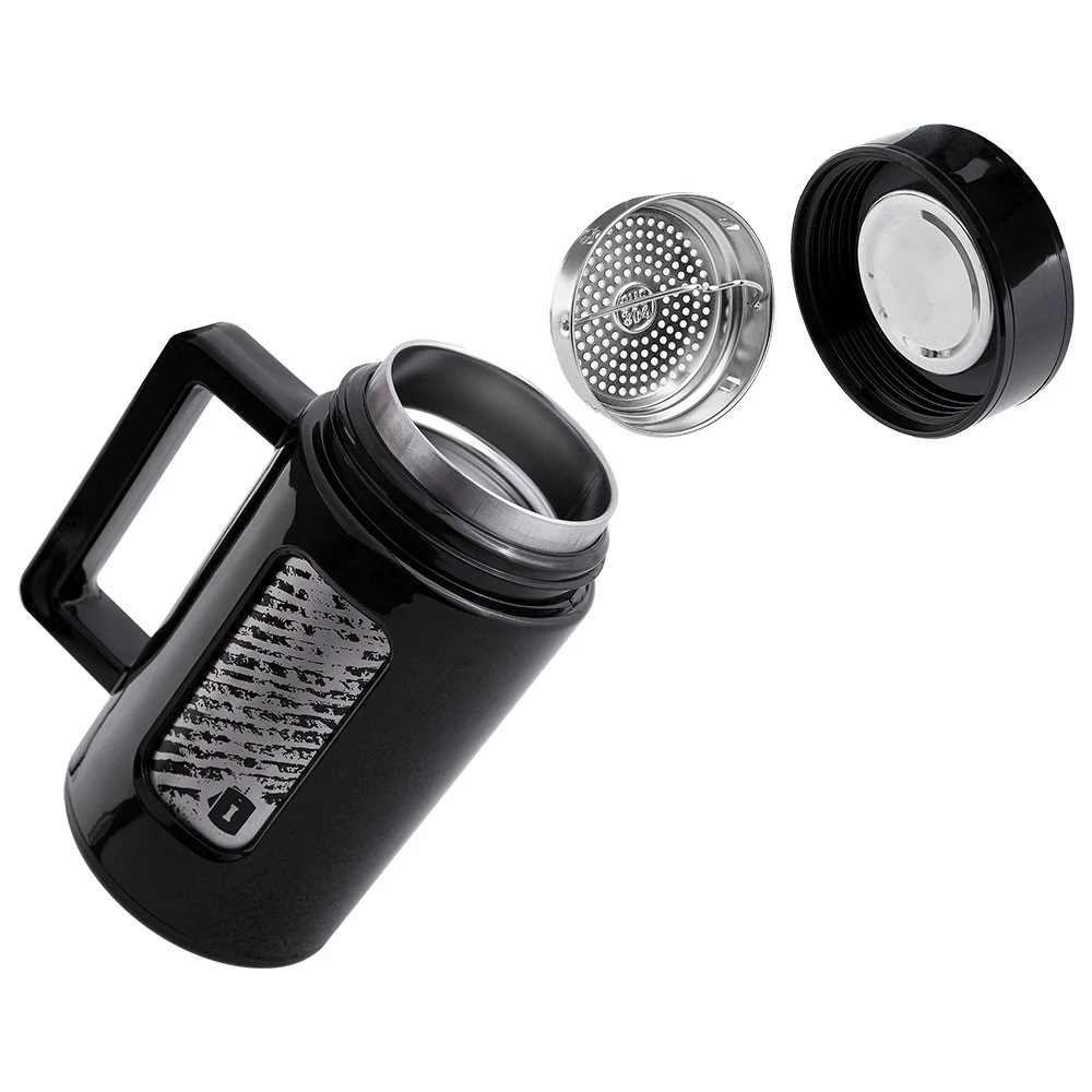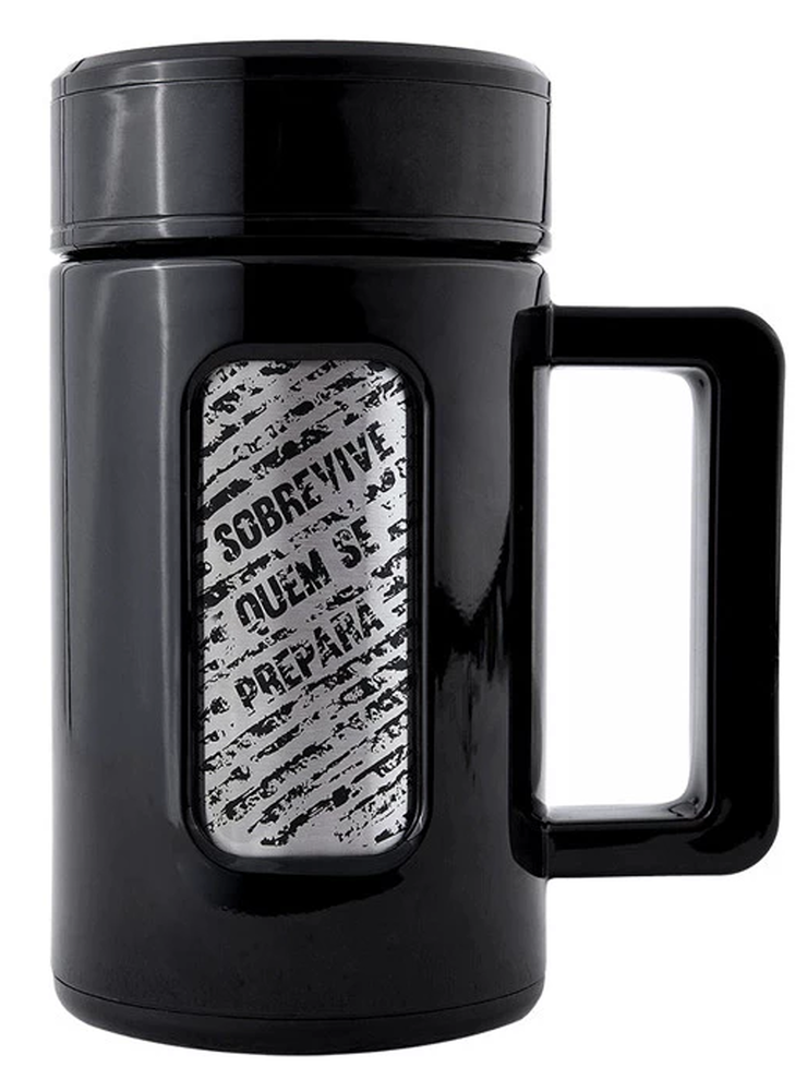 A Caneca Térmica INVICTUS Mugla 430ML é mais uma opção na linha de hidratação pensada para apoiar o usuário em atividades do dia a dia, seja no escritório ou fora dele. Fabricada em ABS no corpo externo e cabo, tem ampola com dupla parede em aço inox 304 SUS atóxico, isolamento à vácuo e comporta 430 ml. A principal funcionalidade está na sua capacidade térmica de manter líquidos frios por até 24 horas e líquidos quentes por até 12 horas. A caneca Mugla tem característica própria, pois carrega a alma da INVICTUS e os guerreiros que buscam a preparação. Pode ser encontrada na cor preta.