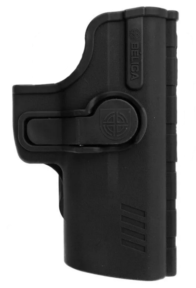 - Possui trava de segurança, que pode ser liberada no exato momento do saque da arma.