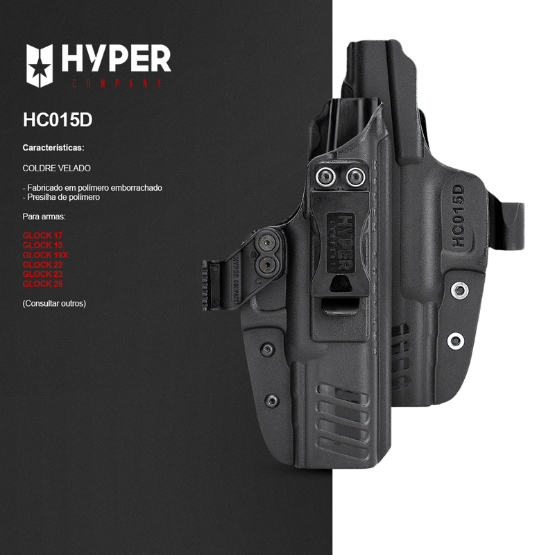 O Coldre Velado de Polímero HYPER G3 e G3 TORO foi desenvolvido em polímero emborrachado, material maleável que proporciona maior conforto ao porte velado, evita arranhões em seu equipamento e ainda facilita o saque e retorno imediato da arma ao coldre. Coldre discreto, seguro e de alta durabilidade.