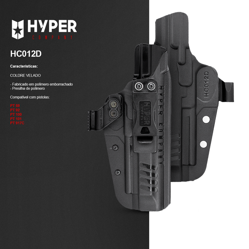 O Coldre Velado de Polímero HYPER foi desenvolvido em polímero emborrachado, material maleável que proporciona maior conforto ao porte velado, evita arranhões em seu equipamento e ainda facilita o saque e retorno imediato da arma ao coldre. Coldre discreto, seguro e de alta durabilidade.