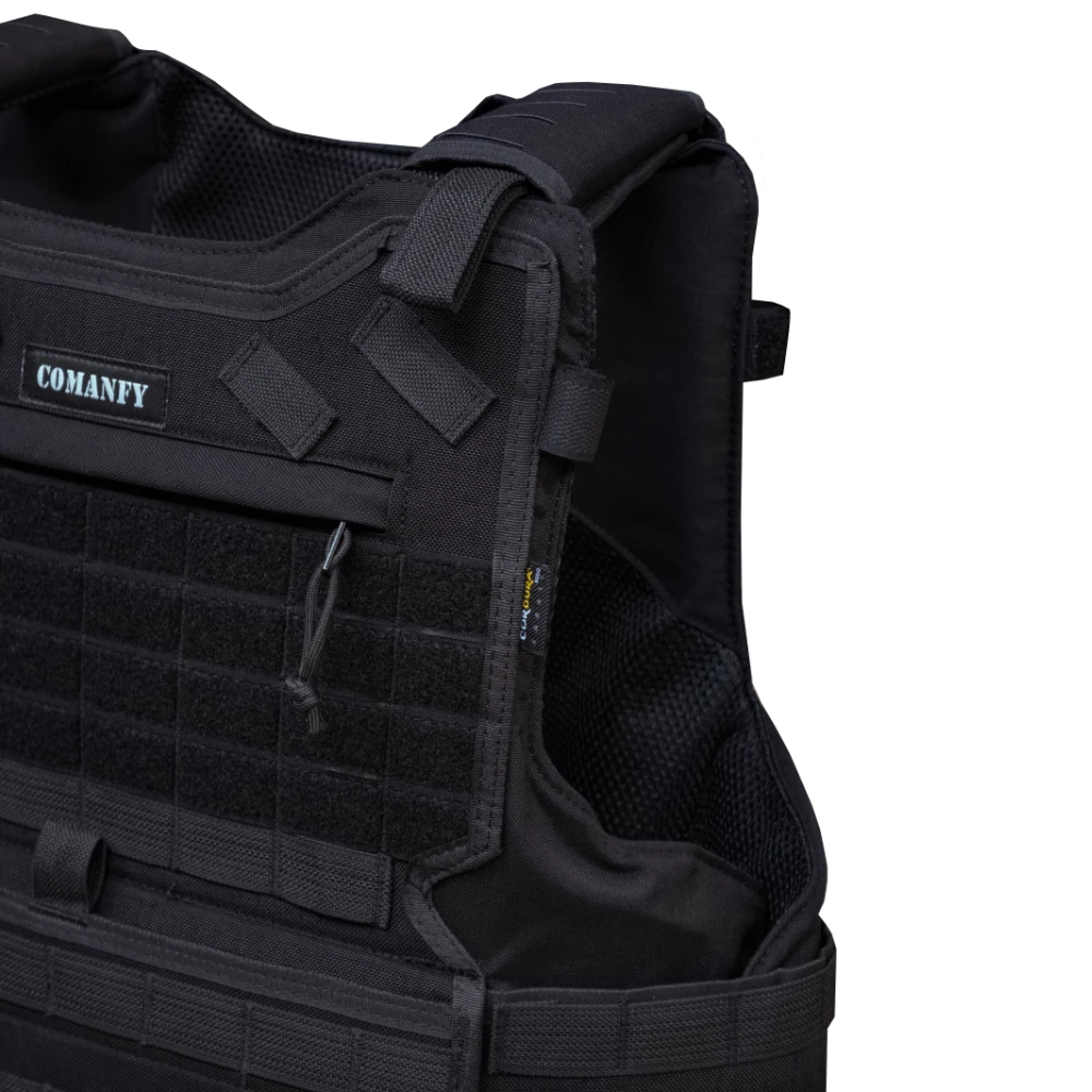 O Colete COMANFY® G6 Foi Desenvolvido Para os Profissionais de Segurança que Desejam Tudo em Um só Equipamento. O Colete Possui Sistema de Soltura Rápida Comanfy® ( Desenvolvido Pela Equipe de Criação Comanfy®) abstendo se do sistema arcaico com cabo de aço , Um Bolso Grande Frontal Horizontal velado com Fechamento e Abertura com Ziper, um bolso Canguru ,Elástico na Retaguarda do Colete Para Melhorar a Postura e Redução de Possíveis Problemas de Coluna ao longo dos anos . No seu Forro Interno Possui Tecido NYLON 3D que Ajuda e Elimina o Aumento da Temperatura Corporal do Operador .