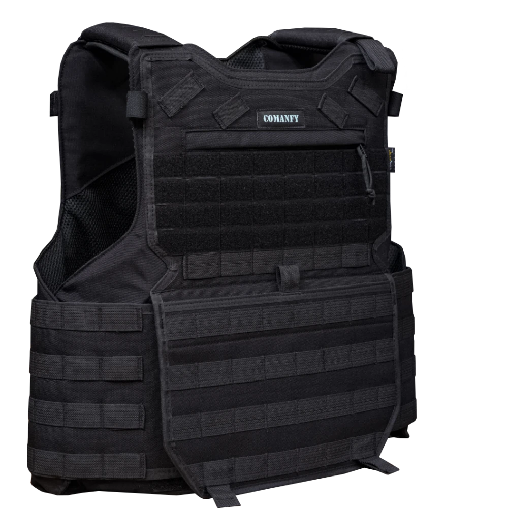 O Colete COMANFY® G6 Foi Desenvolvido Para os Profissionais de Segurança que Desejam Tudo em Um só Equipamento. O Colete Possui Sistema de Soltura Rápida Comanfy® ( Desenvolvido Pela Equipe de Criação Comanfy®) abstendo se do sistema arcaico com cabo de aço , Um Bolso Grande Frontal Horizontal velado com Fechamento e Abertura com Ziper, um bolso Canguru ,Elástico na Retaguarda do Colete Para Melhorar a Postura e Redução de Possíveis Problemas de Coluna ao longo dos anos . No seu Forro Interno Possui Tecido NYLON 3D que Ajuda e Elimina o Aumento da Temperatura Corporal do Operador .