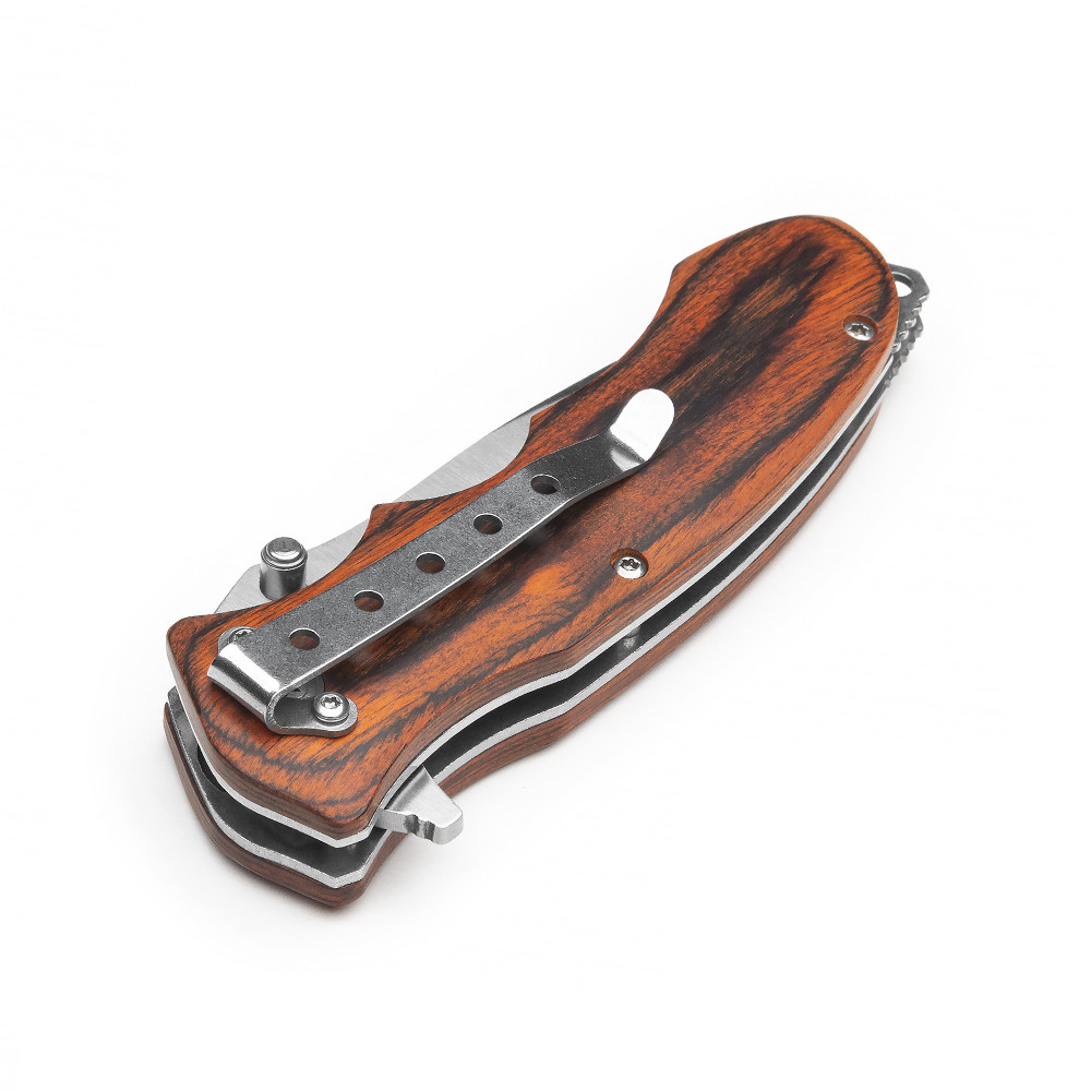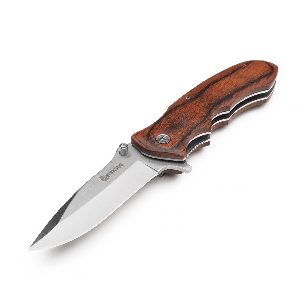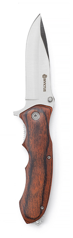 O Canivete Skara compõe o portfólio de canivetes táticos INVICTUS. Possui lâmina em aço inoxidável 420, cabo em madeira natural, clip tático, alça porta-fiel e abertura fácil e rápida, assistida por mola (spring assisted).