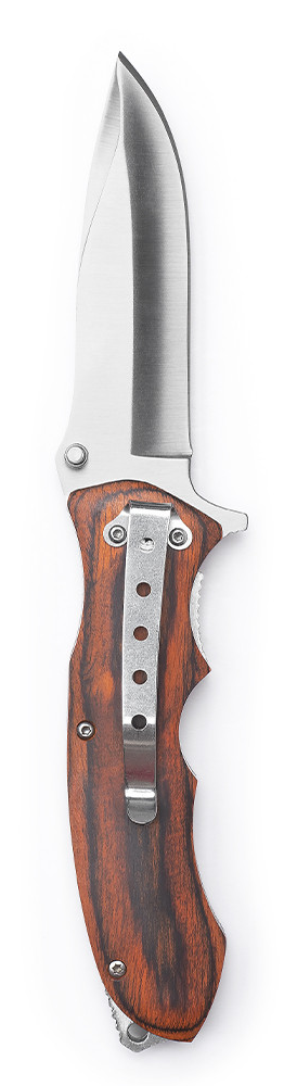 - Acabamento: lâmina em inox escovado e empunhadura em madeira natural.