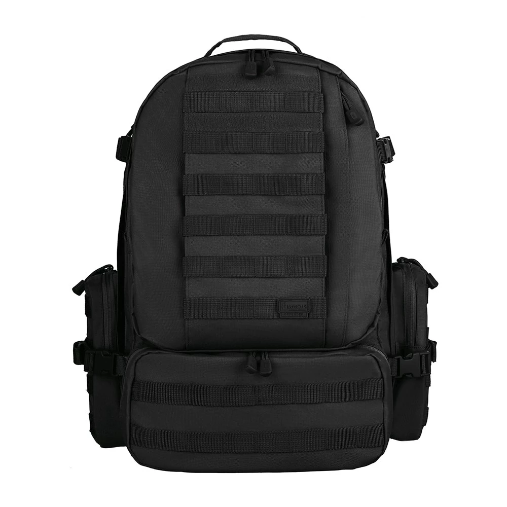 A mochila Defender é de maior porte e foi desenvolvida para ser usada em situações extremas e de sobrevivência. Apesar da robustez e grande capacidade de carga, proporciona conforto ao usuário em função do seu painel traseiro acolchoado e dos cintos de fixação na cintura e tórax.