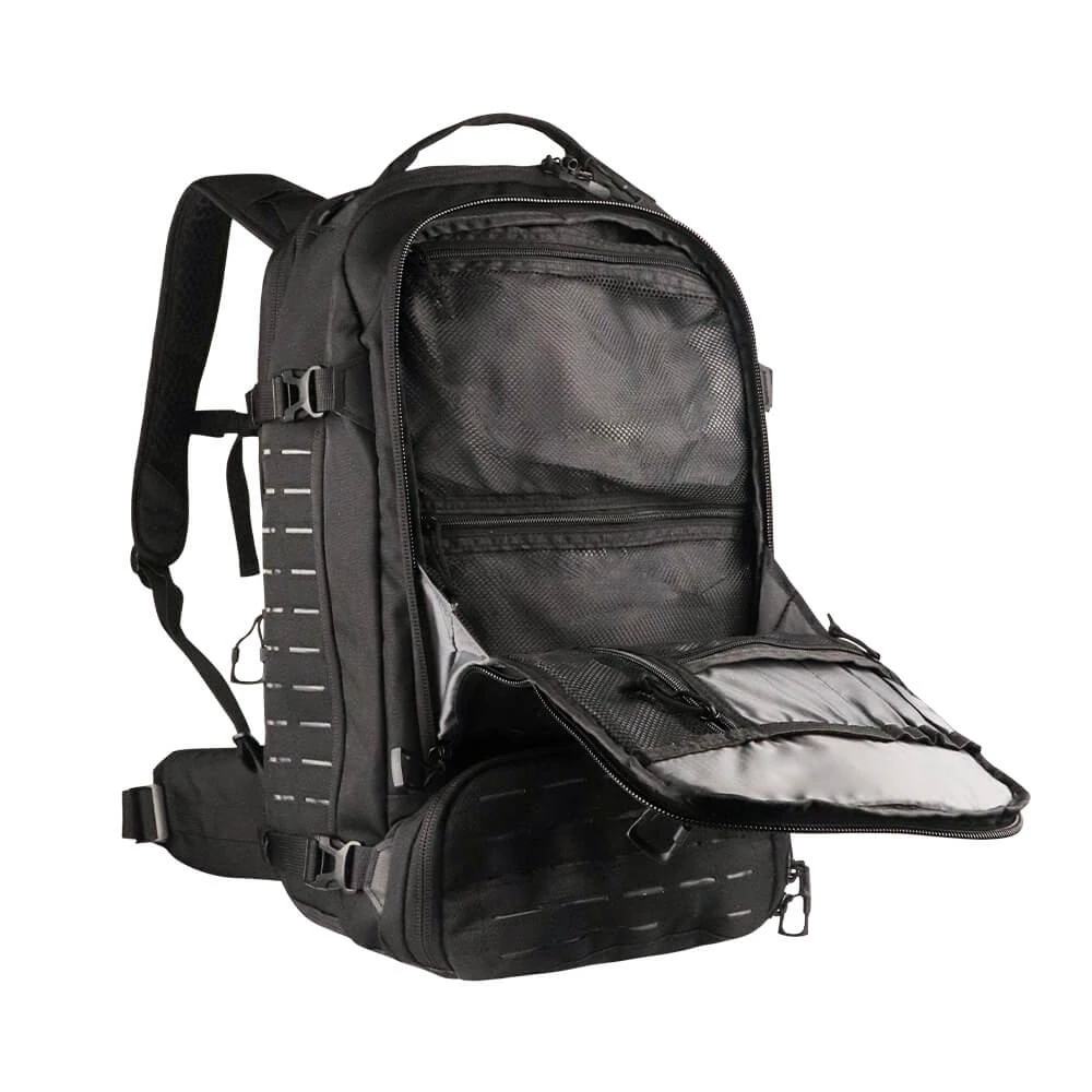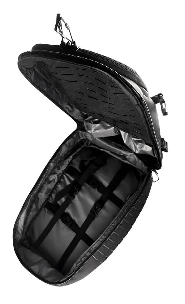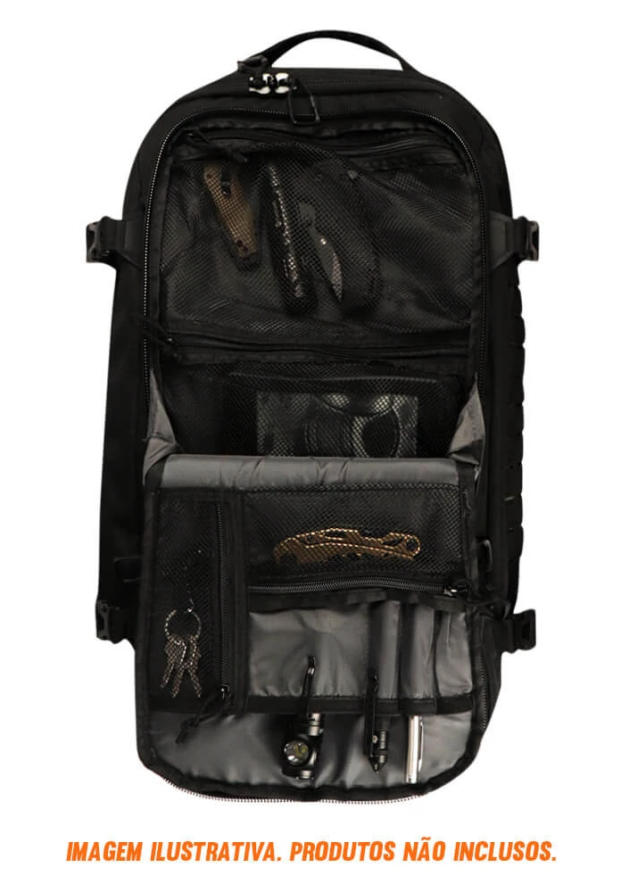 - Painel MOLLE interno em Laser Cut, de fácil acesso, para fixação de bolsos e equipamentos.