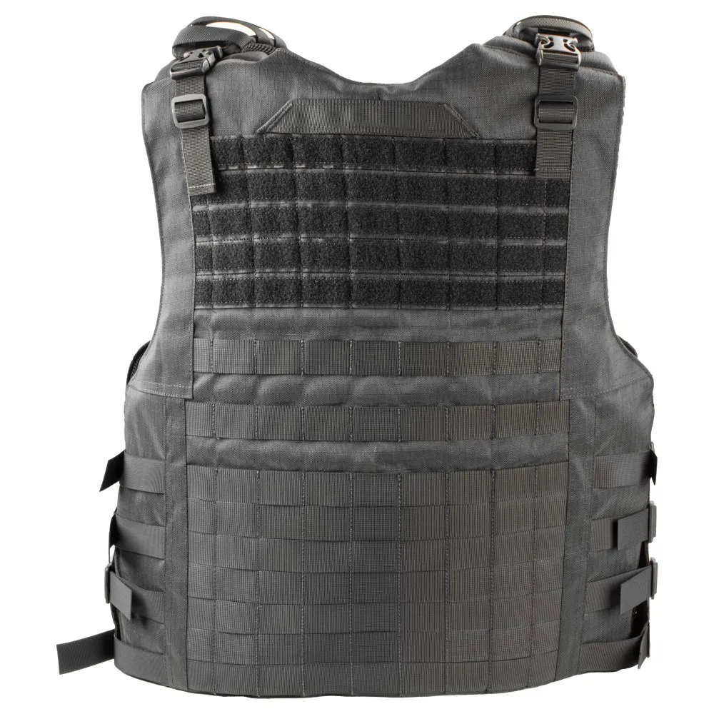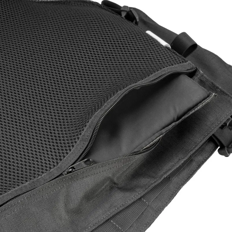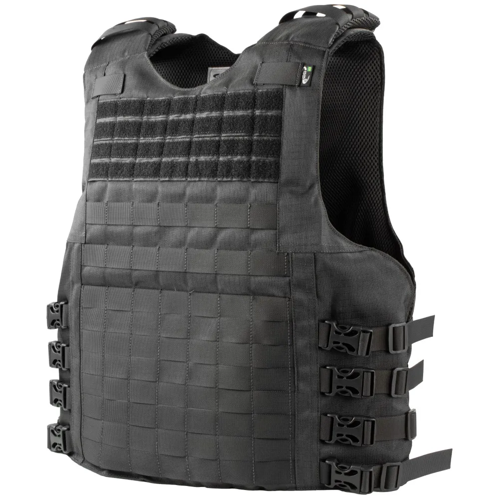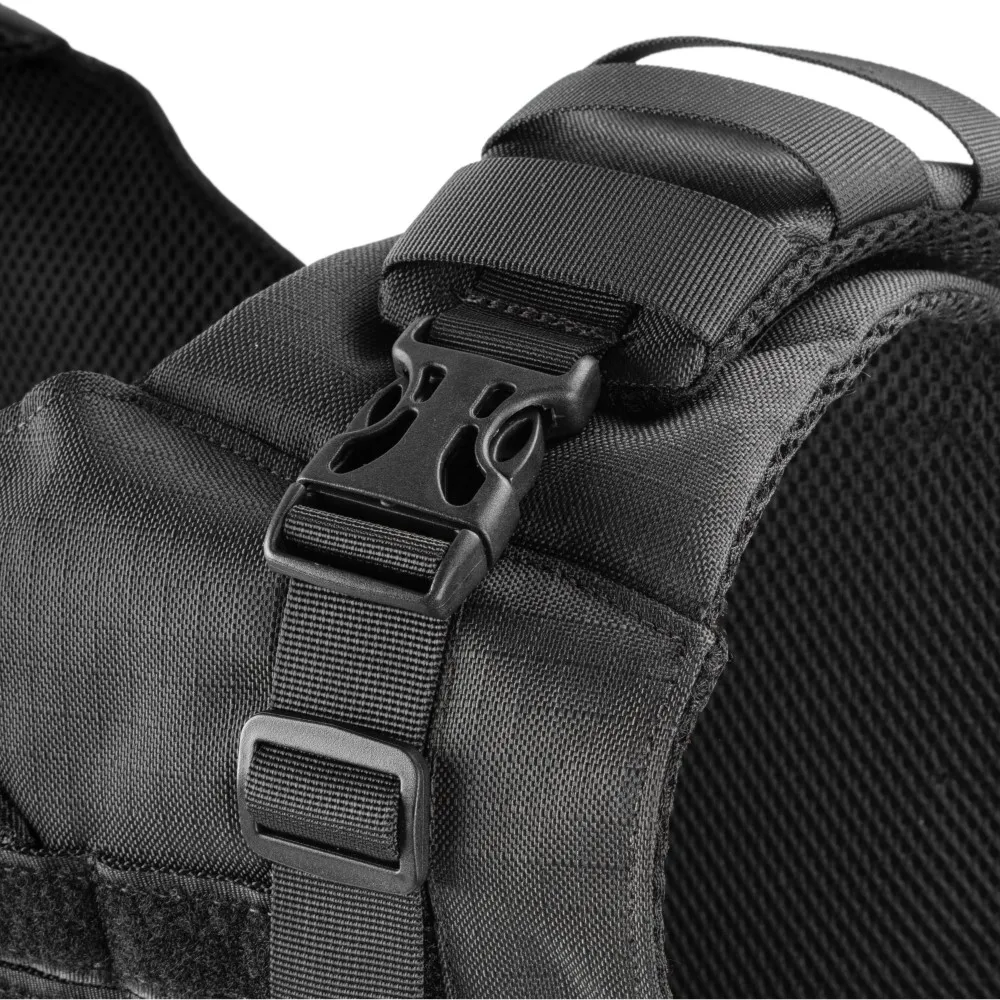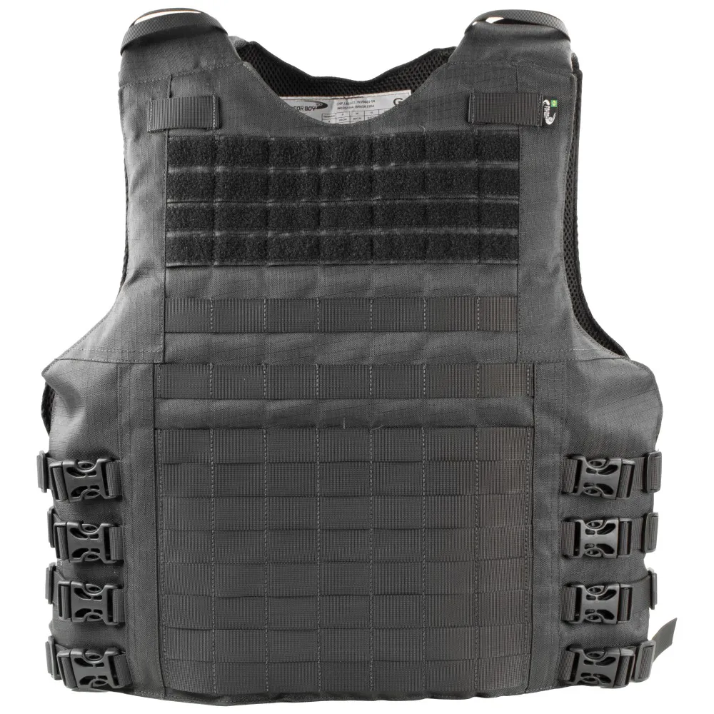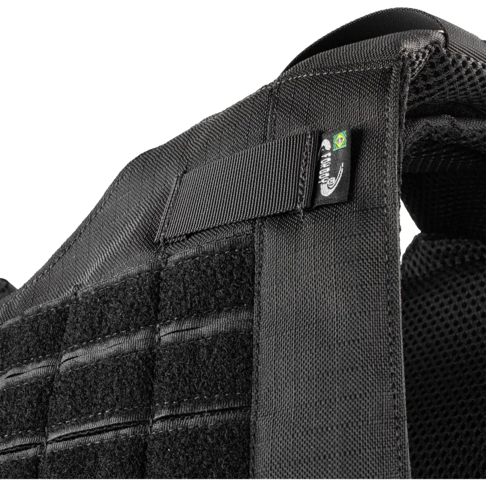 A capa de colete modular PROTECTION X-FIVE FB6000 é confeccionada em RIP STOP 100% poliéster, modelo slim, fechamento em velcro original, fecho engate rápido (tic Tac), forração em tecido aerado spacer 100% poliéster com tratamento antimicrobiano e fitas modulares retardante a chamas de alta resistência. Seu design permite inserção de painéis Nível llI-A. Possui alça de arrasto em fita de 50mm com resistência de 200kg.