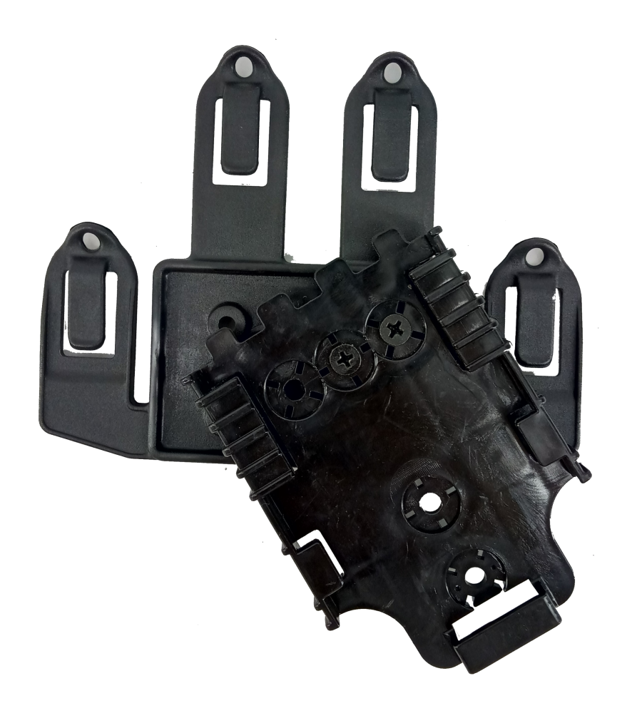 Tem um sistema de fácil encaixe com o coldre, permitindo desenvolver sua melhor movimentação do coldre, e a sua estabilidade que se dá pelo encaixe simétrico do suporte adjunto com colete.