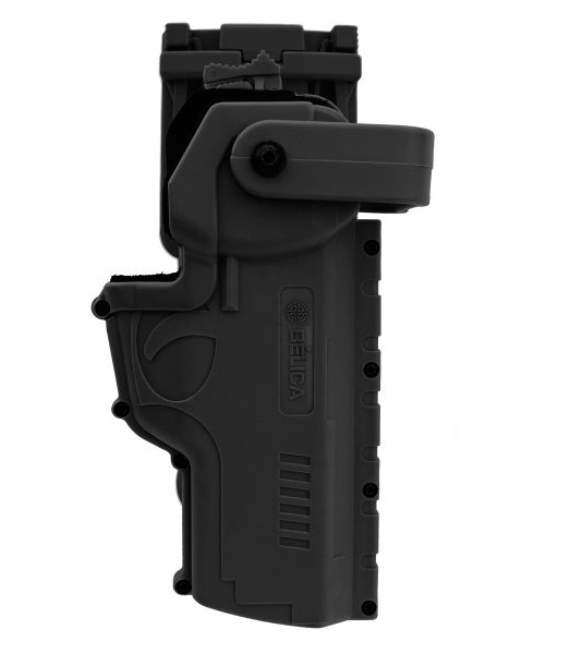 - Possui sistema de catraca rotativa, permitindo a angulação do Coldre em sua base, facilitando o manuseio da arma;