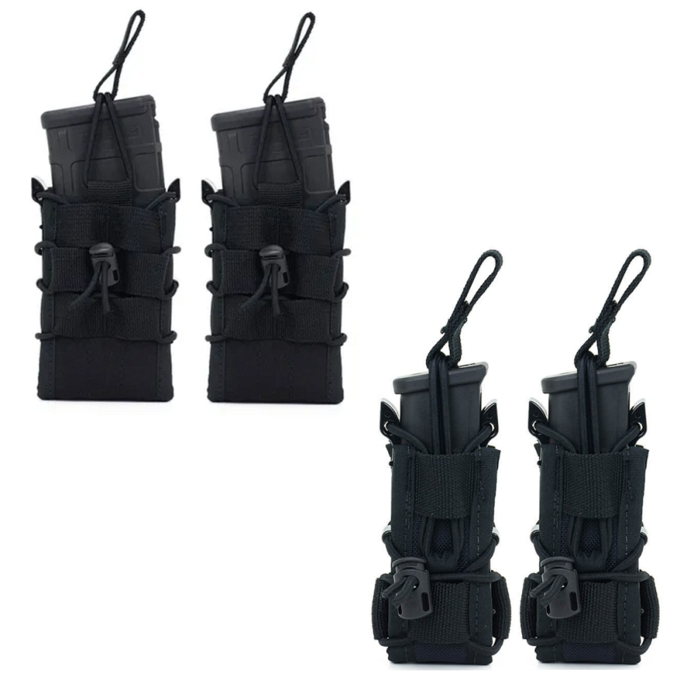 Kit 02 Fast Mag fuzil + 02 Fast Pistol Forhonor PRODUTO ORIGINAL.FAST MAG (5.56) ou (7.62)Confeccionado em Cordura® 1000 DENIER, Hastes de polímero injetado PA 6 VB260, elásticos de 3,5 mm de espessura e puxador em fita de 2,5cm 100% poliamida dobrada ao elástico como puxador do sistema de pressão sobre o carregador.Possui na parte frontal, 3 fitas modulares horizontais de 2,5cm de espessura e regulador em haste de polímero injetado para regulagem da tensão dos elásticos frontais.Parte lateral composta por Polímero injetado PA 6 VB260 com resistência a abrasão e flexão mínima de 30.000 flexões em angulo de 90 graus para inserção e saque do carregador 5.56 ou 7,62 tensionado por 4 fileiras horizontais de elásticos de 3,5 mm de espessura.Parte Posterior (costas) com 3 fitas horizontais e 2 fitas verticais de 2,5cm de espessura e 14,5cm de comprimento sendo o final das fitas com sistema Slide and Lock (Deslizamento e Travamento do sistema modular sem uso de botões) através de alma semi-rígida de 5cm no final das fitas modulares verticais.Dimensões: 11,5cm altura x 8cm largura x 3cm espessura.Capacidade: 1 Carregador 5.56 ou 7.62