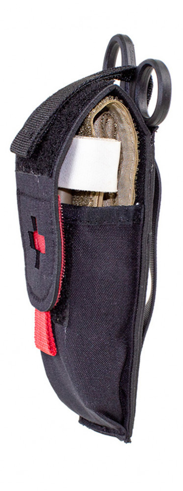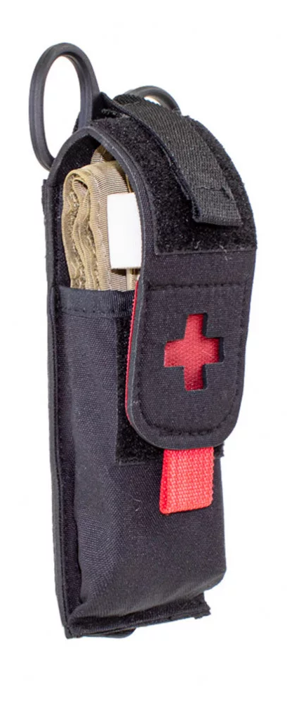 Carregue de forma protegida seu torniquete CAT com essebolso modularproduzido em laminado de Cordura 500. Tampa com com símbolo médico cortado a laser e fita de destaque de abertura. Você pode levar ele no cinto com os velcros ou no sistema modular.Bolso traseiro para a tesoura ponta romba com fita de fechamento em velcro.Botões em latão para não enferrujar e fitas injetadas.