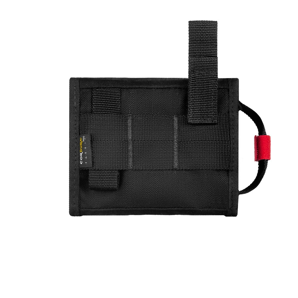 - Fixação no colete através de duas fitas com as pontas rígidas que depois de passadas no sistema modular ficam totalmente presas ao colete ou cinto tático