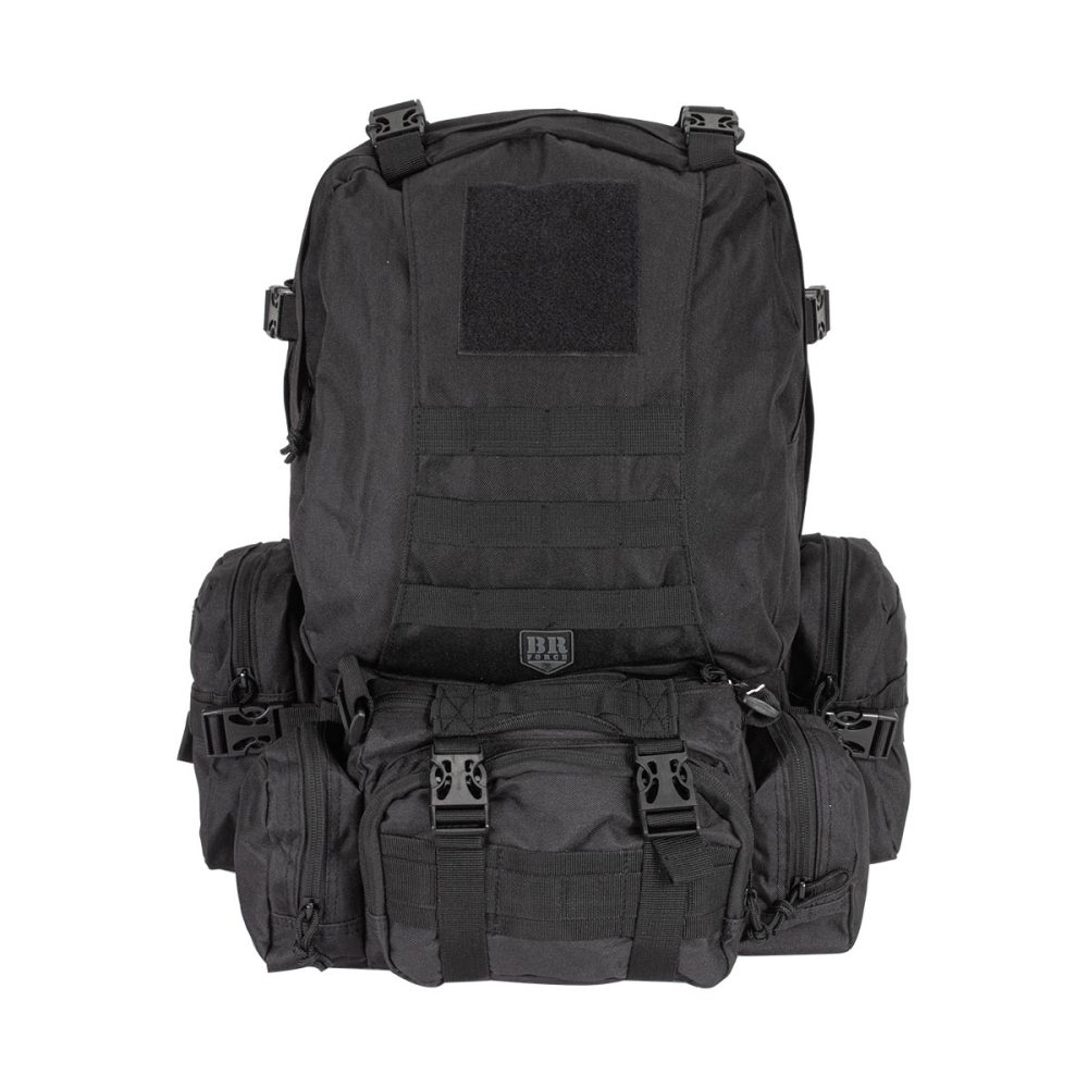 AMochila Tática Campanhaé a mochila de maior capacidade de carga da BR FORCE, com 55 litros. Resistente e ajustável à sua necessidade, possui velcro frontal, bem como bolsos laterais e bolso frontal removíveis. O bolso frontal pode ser desanexado da bolsa, podendo ser utilizado bolsa de ombro ou pochete, ideal para você carregar seu kit APH ou EDC. Esse mesmo bolso possui MOLLES externos e organizadores internos. Ainda oferece compartimento para notebook ou refil de hidratação, caso você precise.
