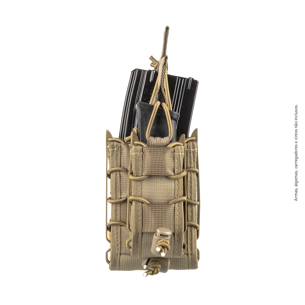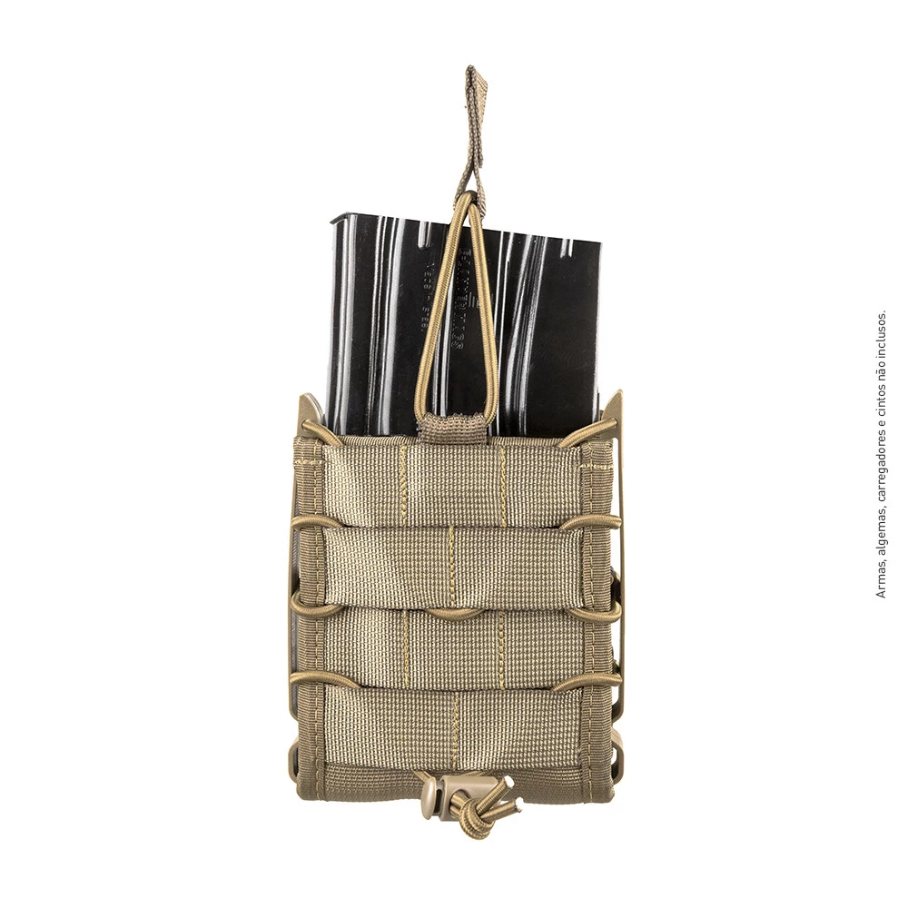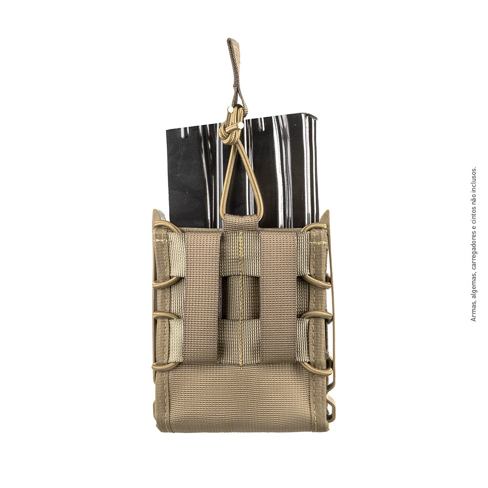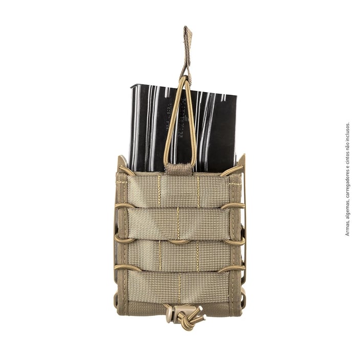 Fique pronto pra tudo, parceiro, com o Porta-Carregador Reload 7.62. Feito para carregadores de r!fles e fabricado em fita de alta tenacidade, ele resiste às situações mais extremas. Os insertos laterais flexíveis em polímero mantém a estrutura e a integridade do produto, enquanto o ajuste de retenção superior removível e o elástico regulador de pressão mantém seu carregador sempre seguro. O Reload 7.62 pode ser montado em canguru, permitindo que você carregue mais de um.
