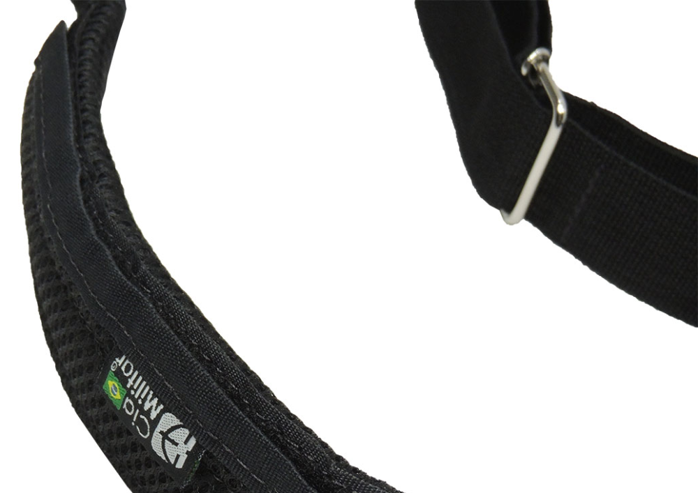 A bandoleira 3 pontas permite o amochilamento do equipamento, mantendo as mãos livres.