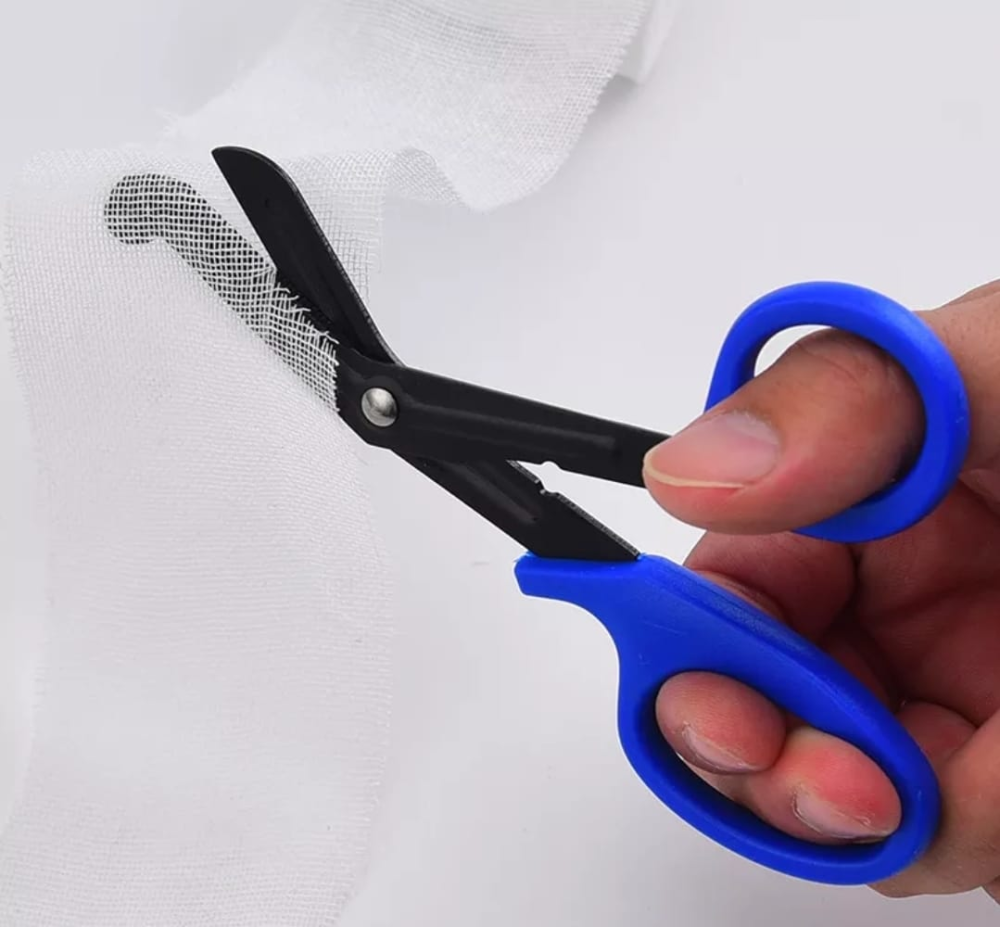 Forma de segurança com lâmina curvada para não cortar paciente.