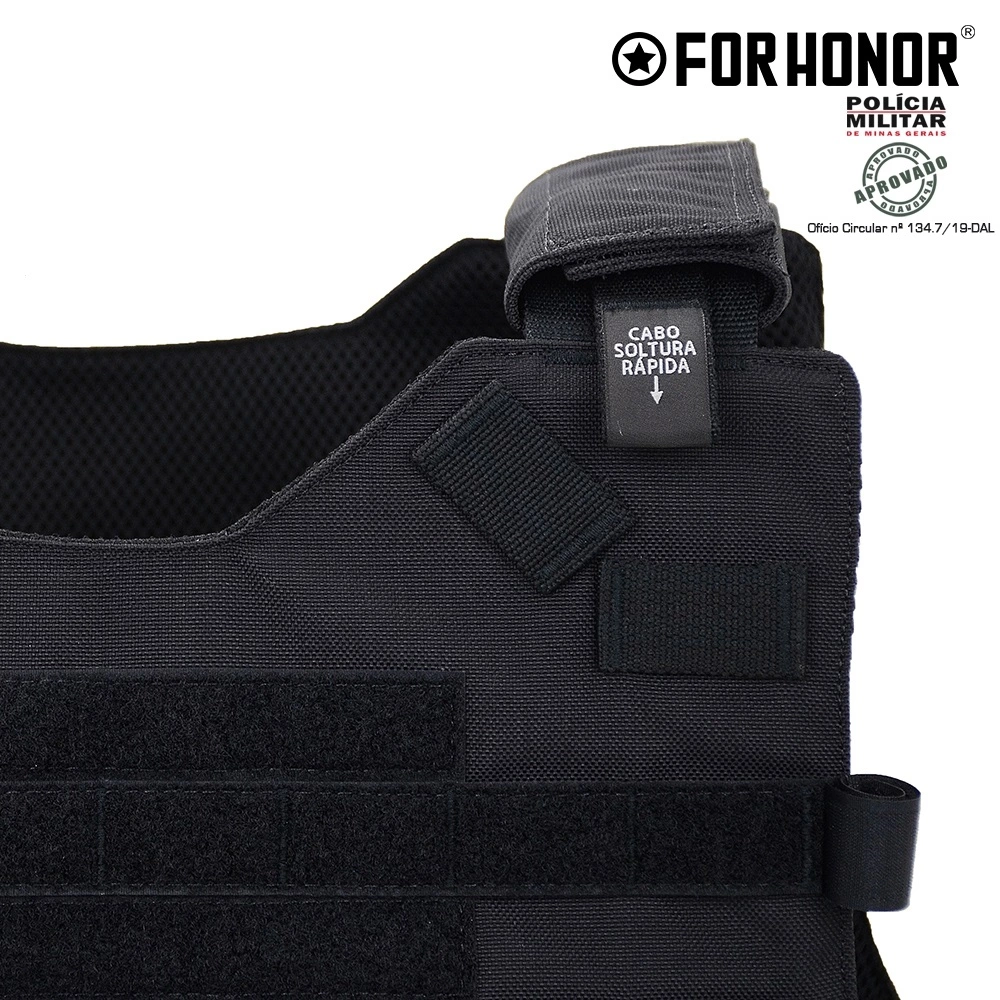 A Capa de colete modular FORHONOR é confeccionada em CORDURA®1000, Velcro original, Forração 3D e fitas modulares de alta resistência.