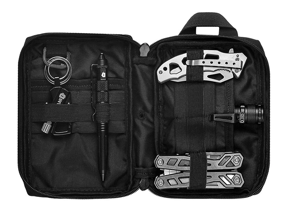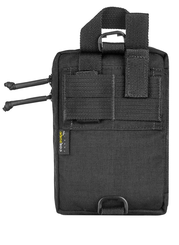 Fixação no colete através de duas fitas com as pontas rígidas que depois de passadas no sistema modular ficam totalmente presas ao colete ou cinto tático.