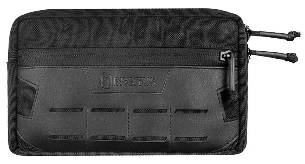 O Bolso Modular Horizontal 2112 - Preto INVICTUS é um bolso horizontal multiuso confeccionado em CORDURA 1000D. Possui compartimento frontal para pequenos objetos. O compartimento principal possui zíper invertido e puxadores duplos. Painel frontal com sistema MOLLE em laser cut. Forração interna e ótimo acabamento. Sua fixação no colete se dá através de duas fitas com as pontas rígidas que depois de passadas no sistema modular ficam totalmente presas ao colete ou cinto tático, tudo para deixar o operador pronto para qualquer missão.