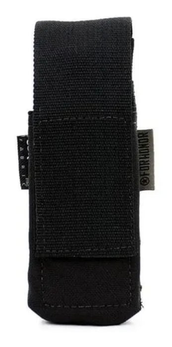 Confeccionado em Cordura®1000 DENIER, possuí Aba em fita 100% poliamida de 50 mm para fechamento e regulagem de altura sobre a lanterna com fechamento em Velcro 50 mm.