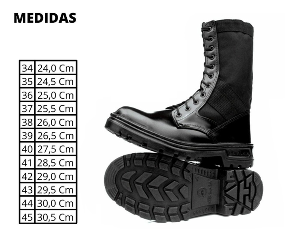 Altura do Cano: 20 a 22 centímetros dependendo da numeração;