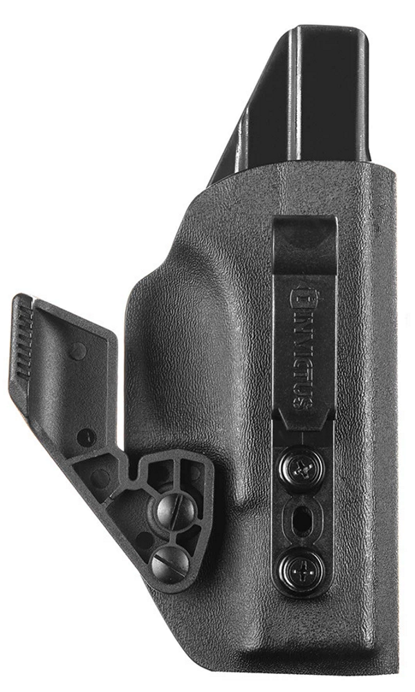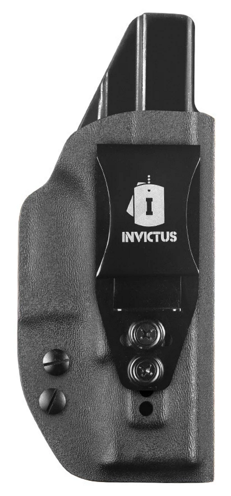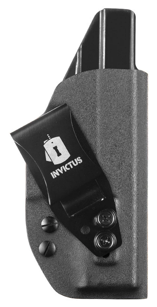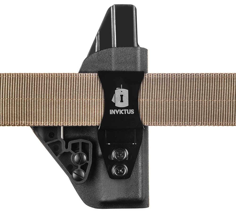 O Coldre GLOCK® Kydex® Iwb Destro Compact INVICTUS têm tecnologia Kydex® USA, um produto diferenciado no meio tático, para operadores e operadoras que exigem o melhor, sempre. O Kydex® não deforma, não propaga chamas e é extremamente resistente ao impacto. Com duas opções de clip, um em polímero (POM), muito resistente, e outro clip metálico em aço inoxidável, com ajuste de ângulo. Ambos os clips possuem regulagem de altura. Os modelos ainda contam com redutor de volume, que pode ser retirado se necessário, e ajuste de retenção, com kit extra de parafusos