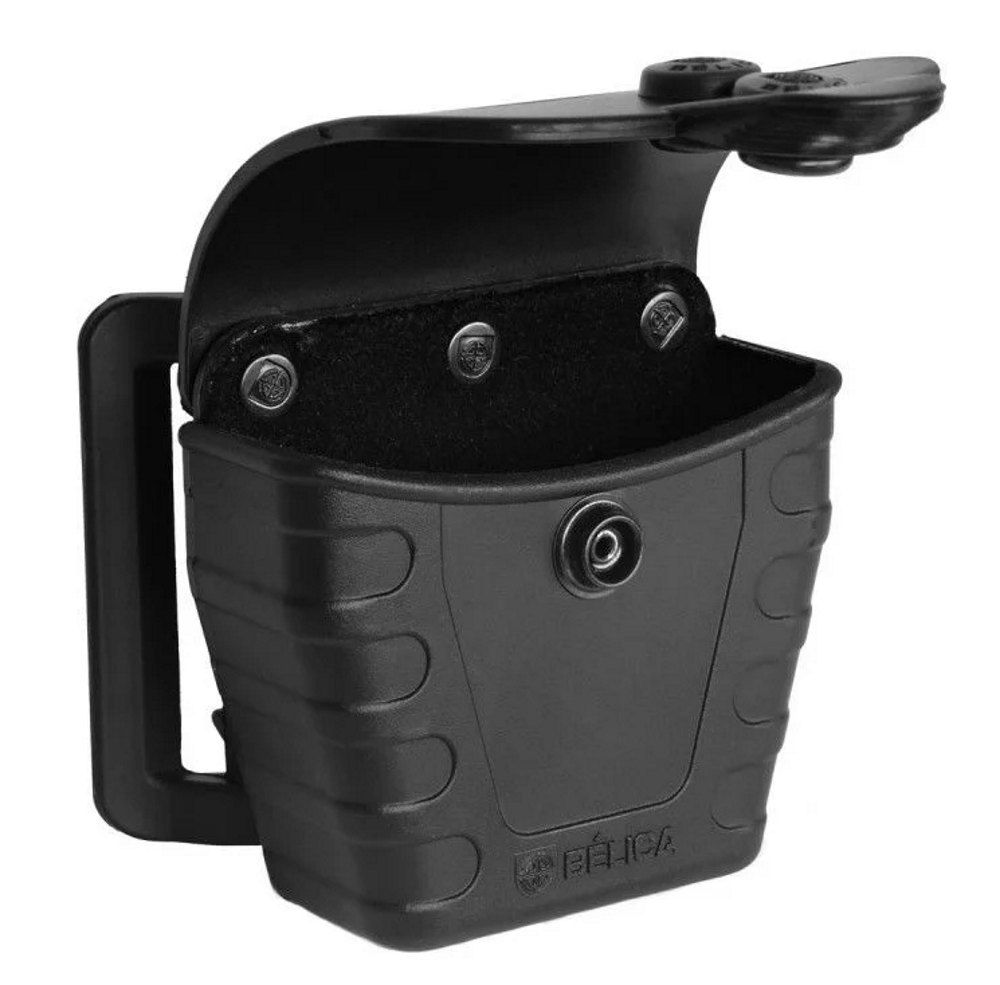 Porta algema Bélica modelo Tab Lock² para algemas de dobradiça ou corrente. Possuí passador para cinto, podendo ser utilizado na horizontal e ou vertical.