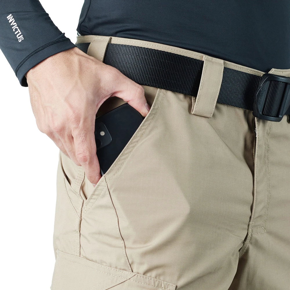 ACalça Tática INVICTUS Platooné produzida com o tecido Rip-Stop Ultimate. Para assegurar resistência, o produto conta com recorte especial entrepernas e reforço de duas camadas no tecido nas regiões de joelhos e barras.