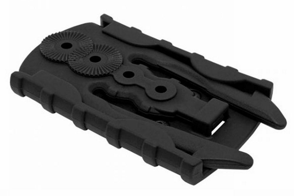 Base pode ser fixada em coletes modulares, mochilas e plataformas, quando acoplada a um adaptador modular (vendido separadamente);