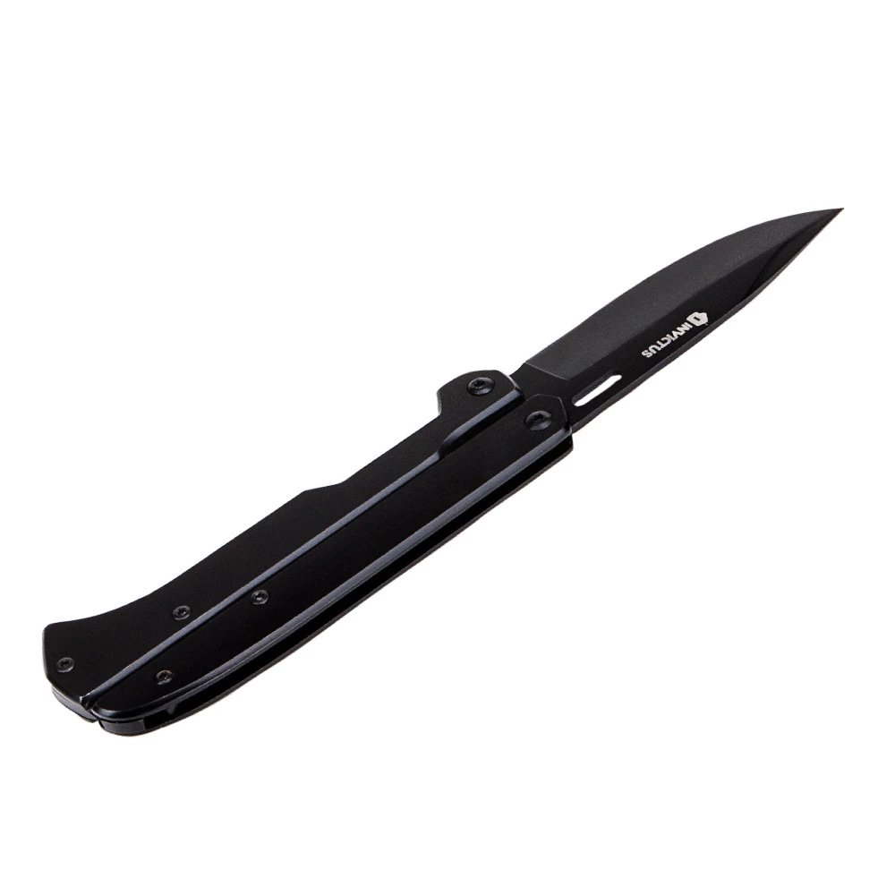 O INVICTUS Wasp é apresenta cabo em aço inoxidável, clip tático de fixação e abertura manual. Sua lâmina é produzida em aço inoxidável 3CR, com espessura de 2 milímetros para cortes super precisos e acabamento preto fosco.