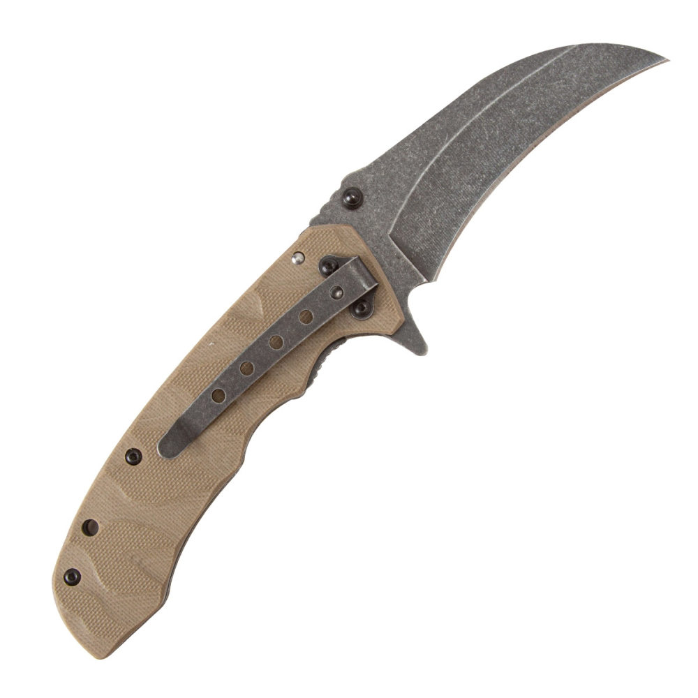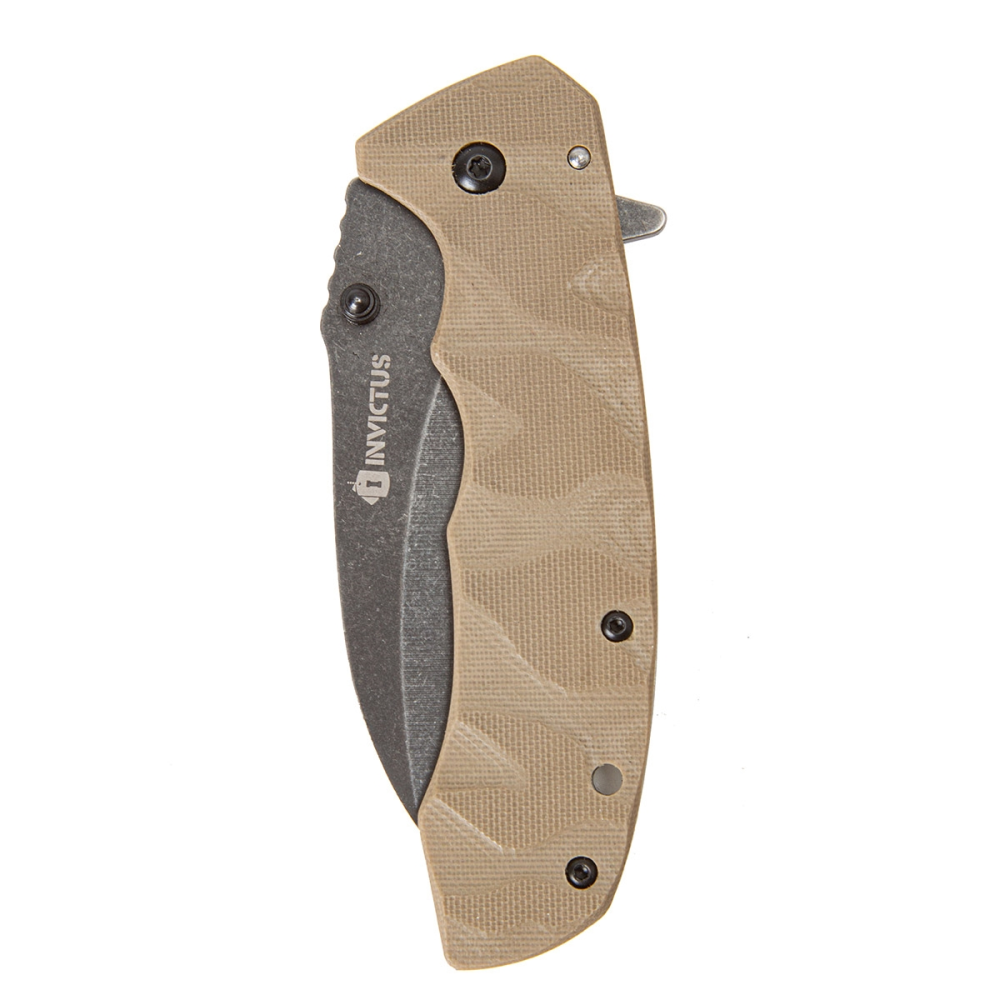 O INVICTUS Adder apresenta cabo em fibra de vidro G10, clip tático de fixação e orifício para fiel. Ele conta com abertura “spring assisted”, quando o canivete é acionado por molas. Sua lâmina é produzida em aço inoxidável 3CR, com espessura de 3 milímetros e acabamento preto escovado.