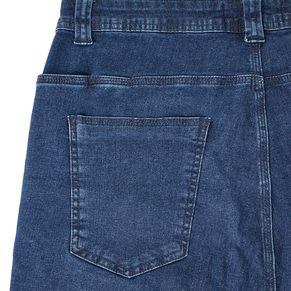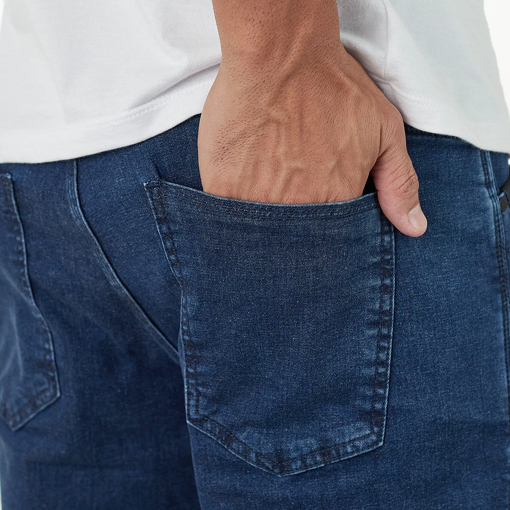 Ela é produzida em Tecido Jeans (72% algodão, 26% poliéster e 2% elastano), trazendo conforto e versatilidade. Graças a essa combinação entre algodão e elastano, ela se torna uma peça extremamente flexível, com liberdade total de movimentos ao seu uso diário.