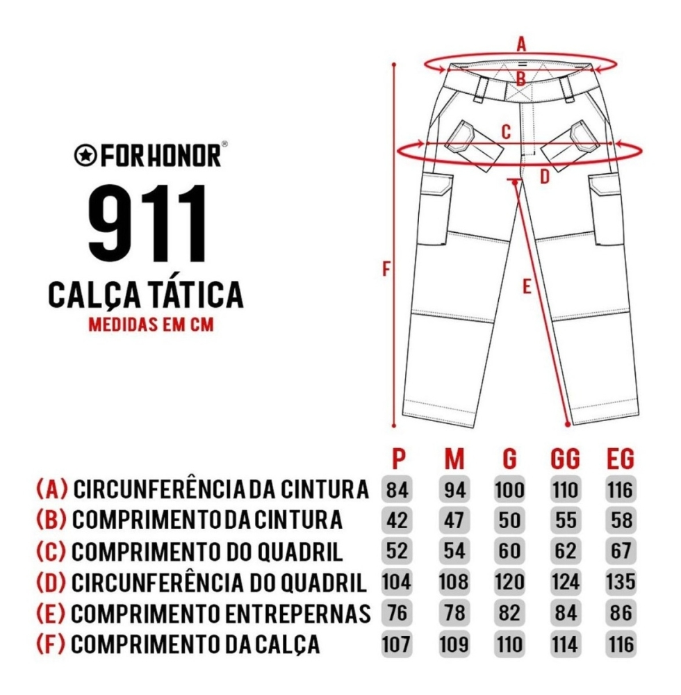 A Calça Combat 911 FORHONOR, foi projetada para atender o mais alto padrão de exigência operacional, confeccionada em RipStop Original Licenciado Anti-Rasgo, proporciona: LEVEZA, CONFORTO e LIBERDADE de movimentos sem perder a resistência e mobilidade operacional.Suas costuras em lina 100% Poliamida, resistem a intempéries climáticas com também: TERRA, AREIA, ÁGUA e SOL, sem perder sua principal característica que é a sua RESISTÊNCIA, impossibilitando assim o apodrecimento ou esfarelamento das costuras, resultando em uma calça de ALTA DURABILIDADE.