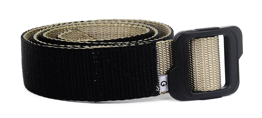 Cinto Tático Forhonor produzido com 2 (Duas) Fitas Poliamida de Alta Resistência com 40mm de largura, costuradas sobrepostas em cores PRETO/TAN.
