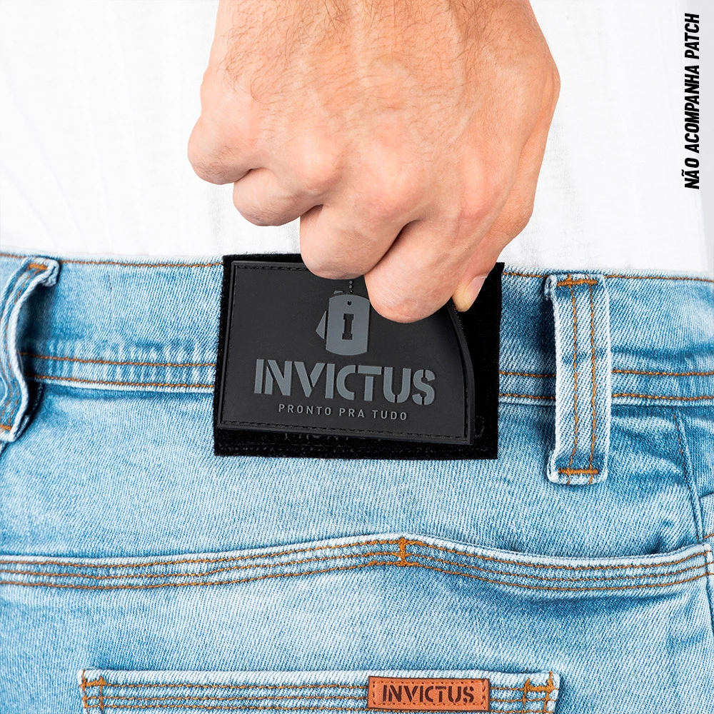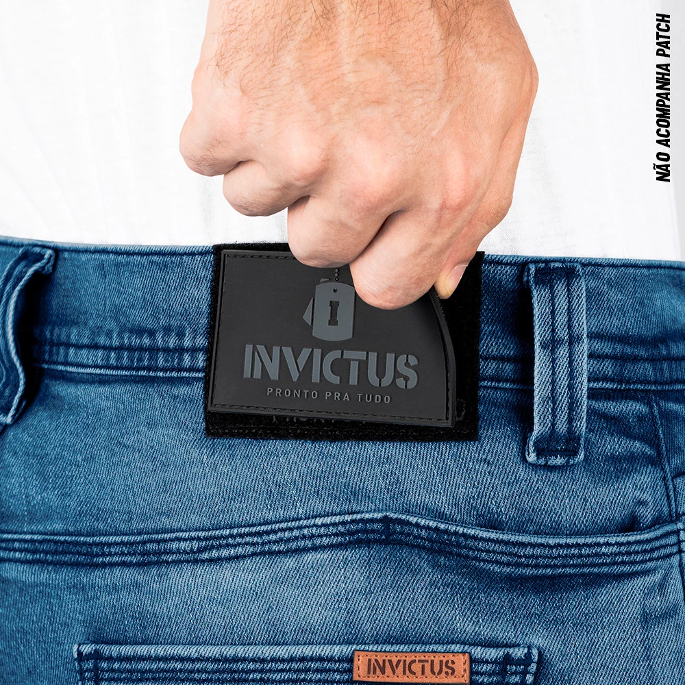 A CALÇA JEANS INVICTUS NATION –possui o DNA tático com apelos estéticos de estilo e funcionais para uso velado. É propícia para acompanhar o operador em diversos ambientes e ocasiões.