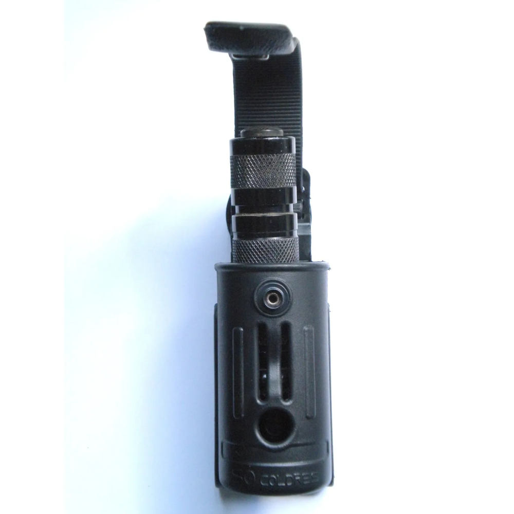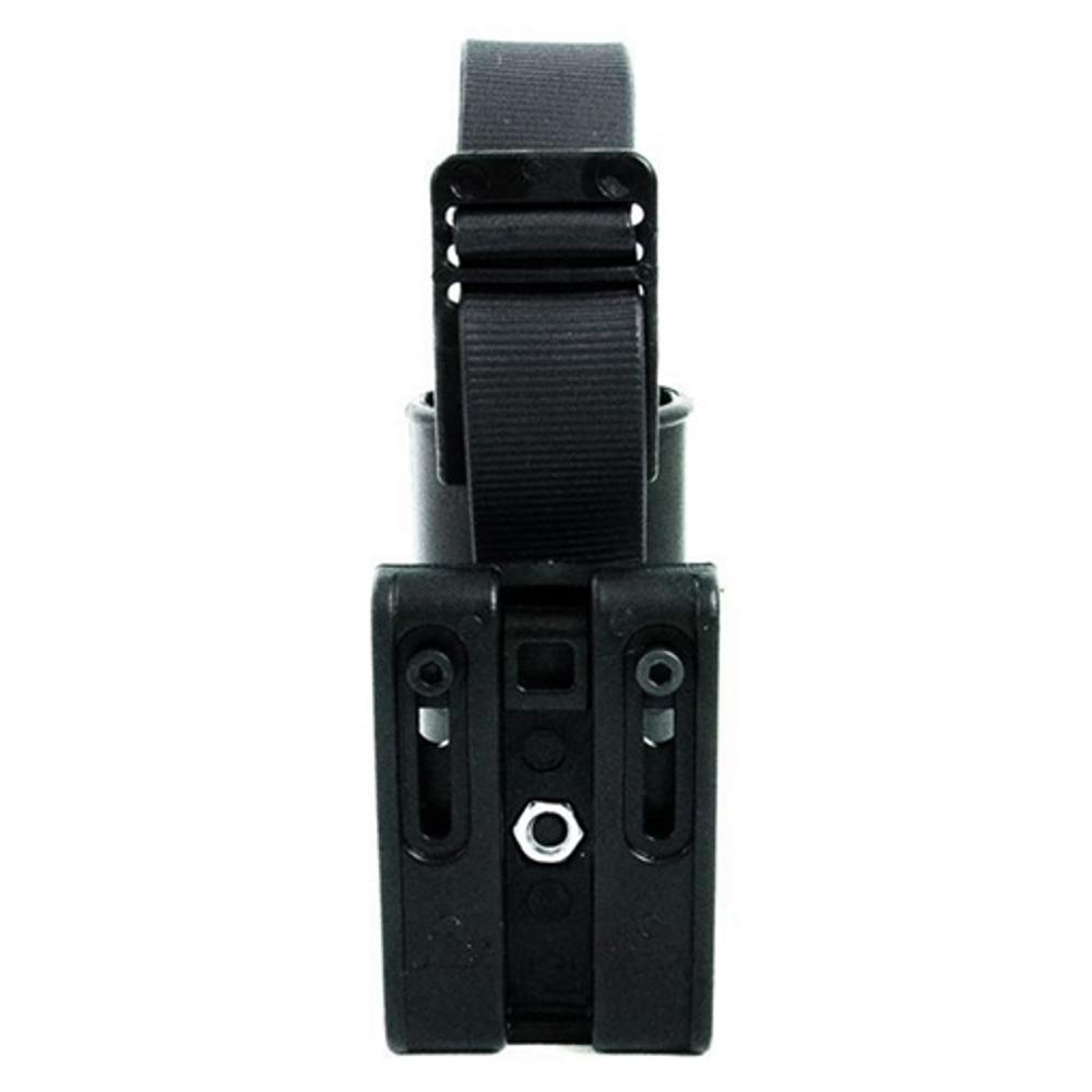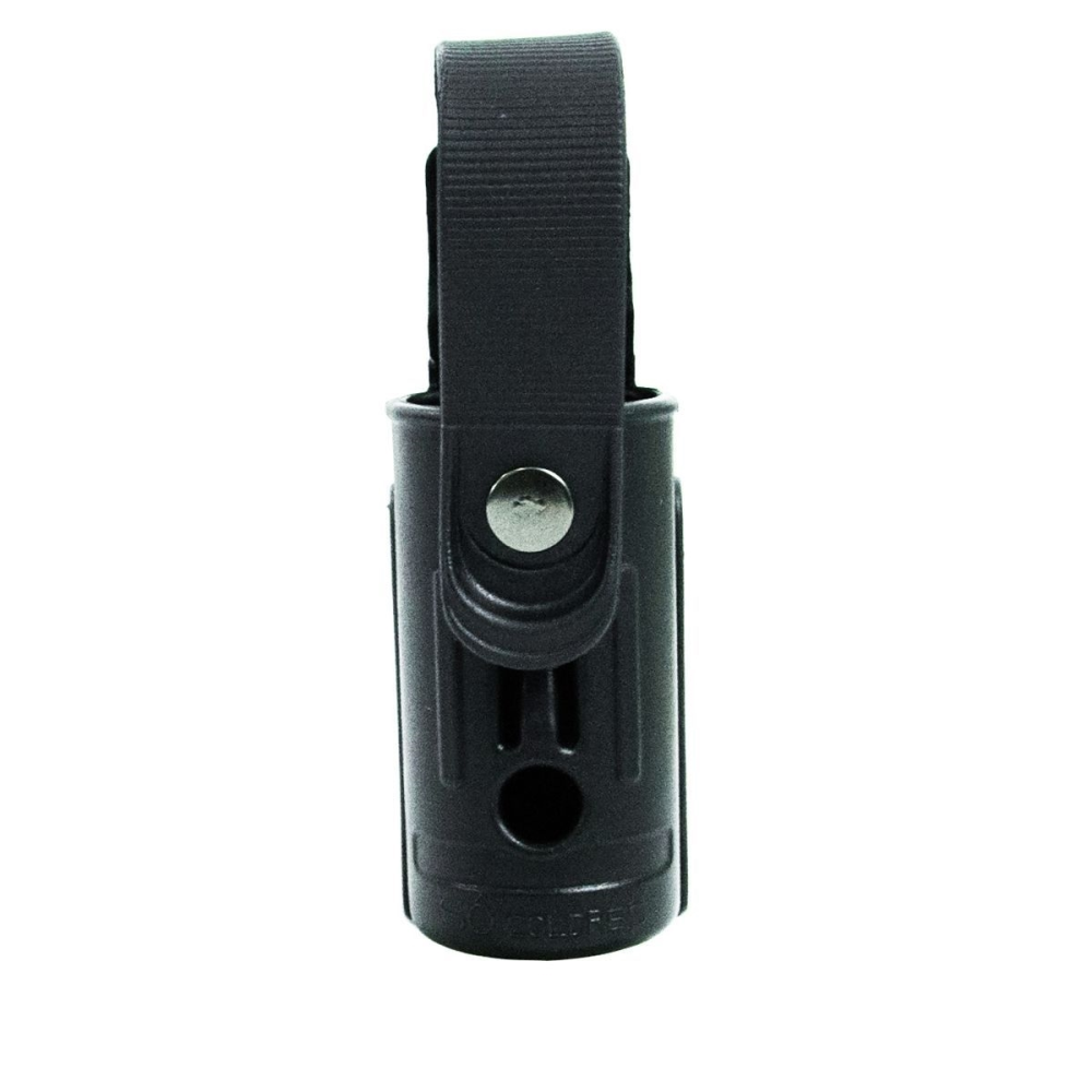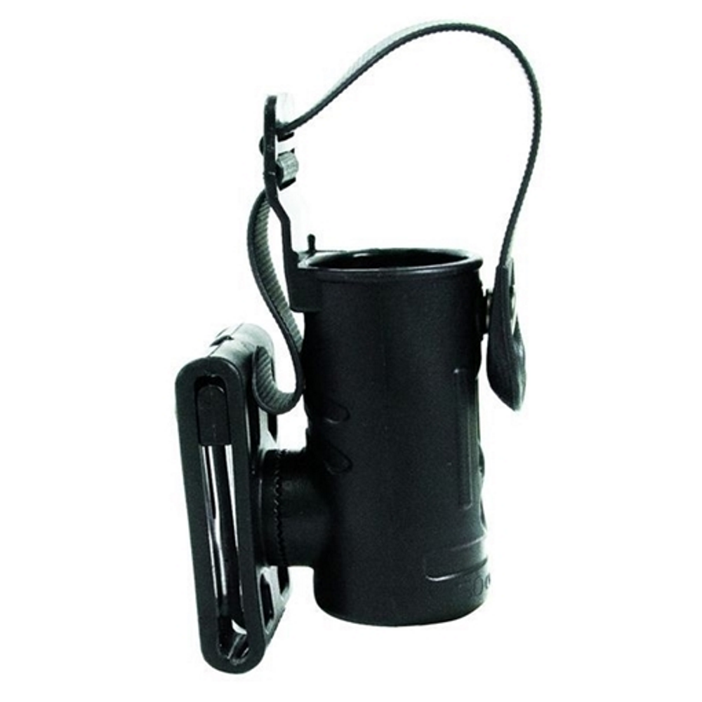 Porta lanterna confeccionado em polímero com passador de cinto regulável, compatível com a maioria das lanternas táticas do mercado.