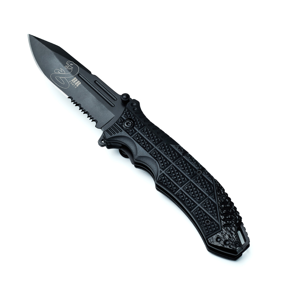 Canivete BR FORCE Caratuvaé um item importante com essência tática, indicado para uso diário. Ele possui abertura spring assisted, trava Liner Lock, porta-fiel, cabo em polímero, lâmina em aço inoxidável 3cr13 com espessura de 3 mm e clip de fixação.