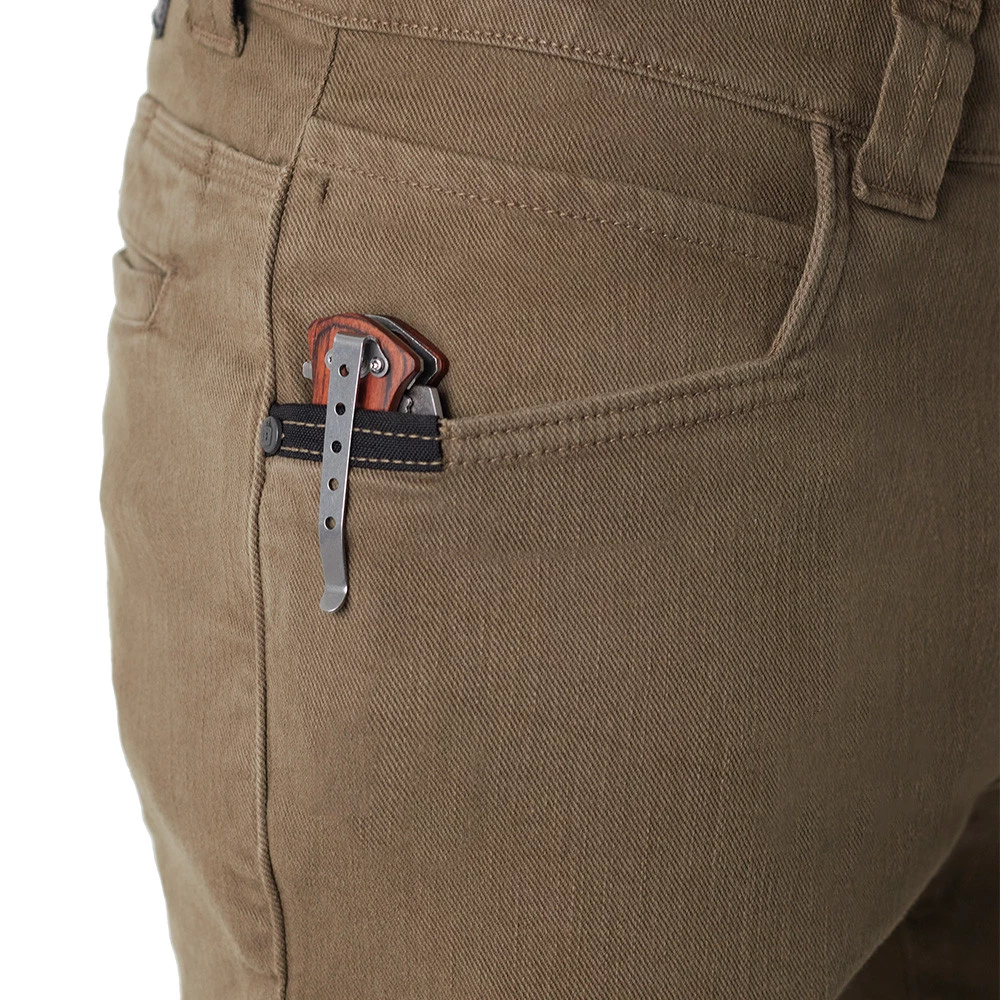 Com modelagem Regular Fit, a Stronger detém 2 bolsos traseiros embutidos para uso estratégico. Ocultos, possuem um sistema de elásticos internos acoplado para encaixe perfeito de carregadores de p!stola, celular ou outro objeto. Ainda, os bolsos frontais possuem reforço em CORDURA® 1000 resinado, que possibilita menos desgaste no porte de itens do seu EDC que possuem clipe, como can!vetes e lanternas táticas.