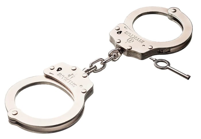 Algema de Corrente INVICTUSé um modelo de algema de pulso que possui ligação de corrente e sistema de fechamento dentado por catracas. O modelo conta ainda com mecanismo de segurança para evitar lesão no uso, acionado pela parte traseira da chave do produto. Fabricada em aço carbono AISI 1020, tem tratamento da superfície preto ou niquelado fosco prata para adquirir a característica de antirreflexo. Acompanha duas chaves em aço carbono AISI 1020 na cor da algema.