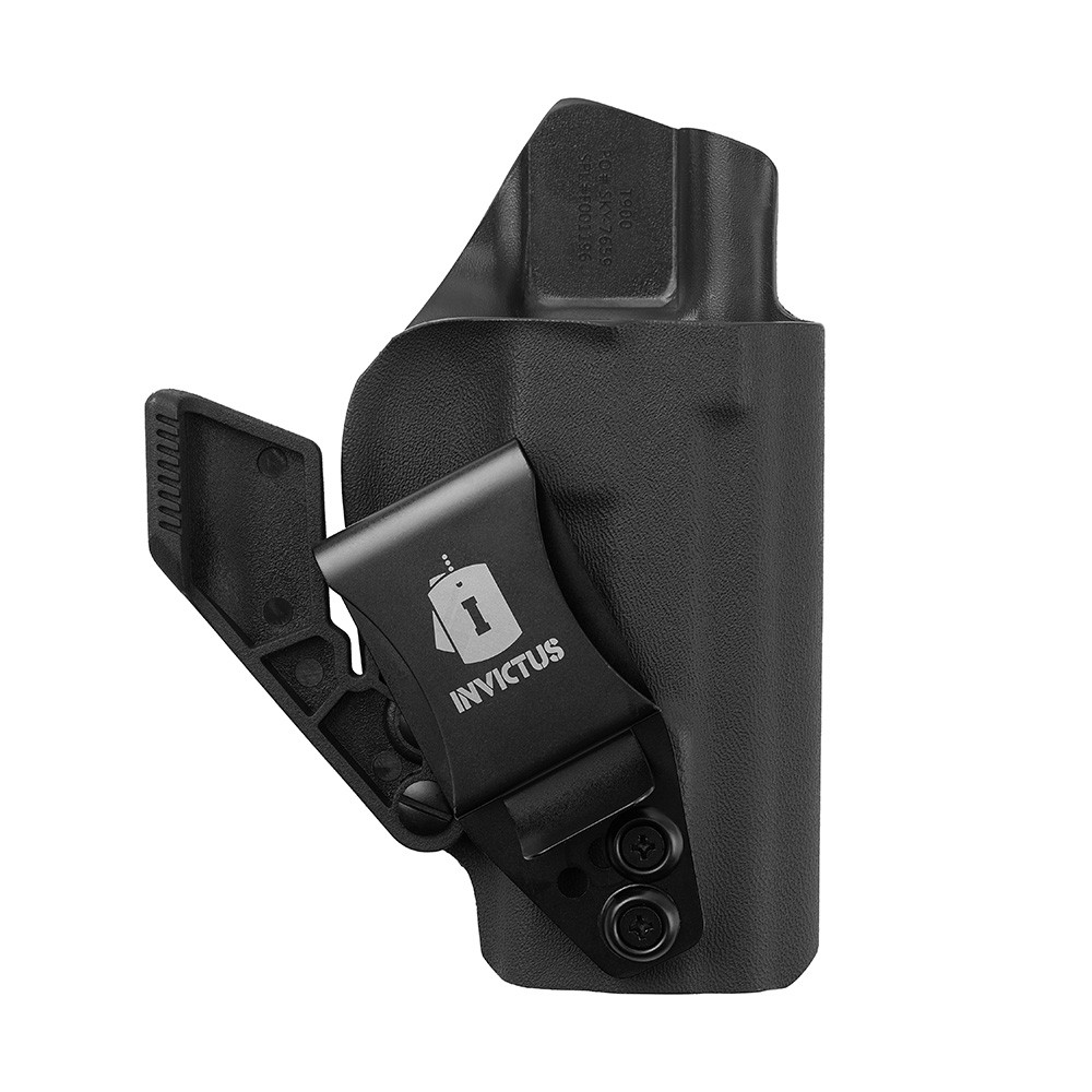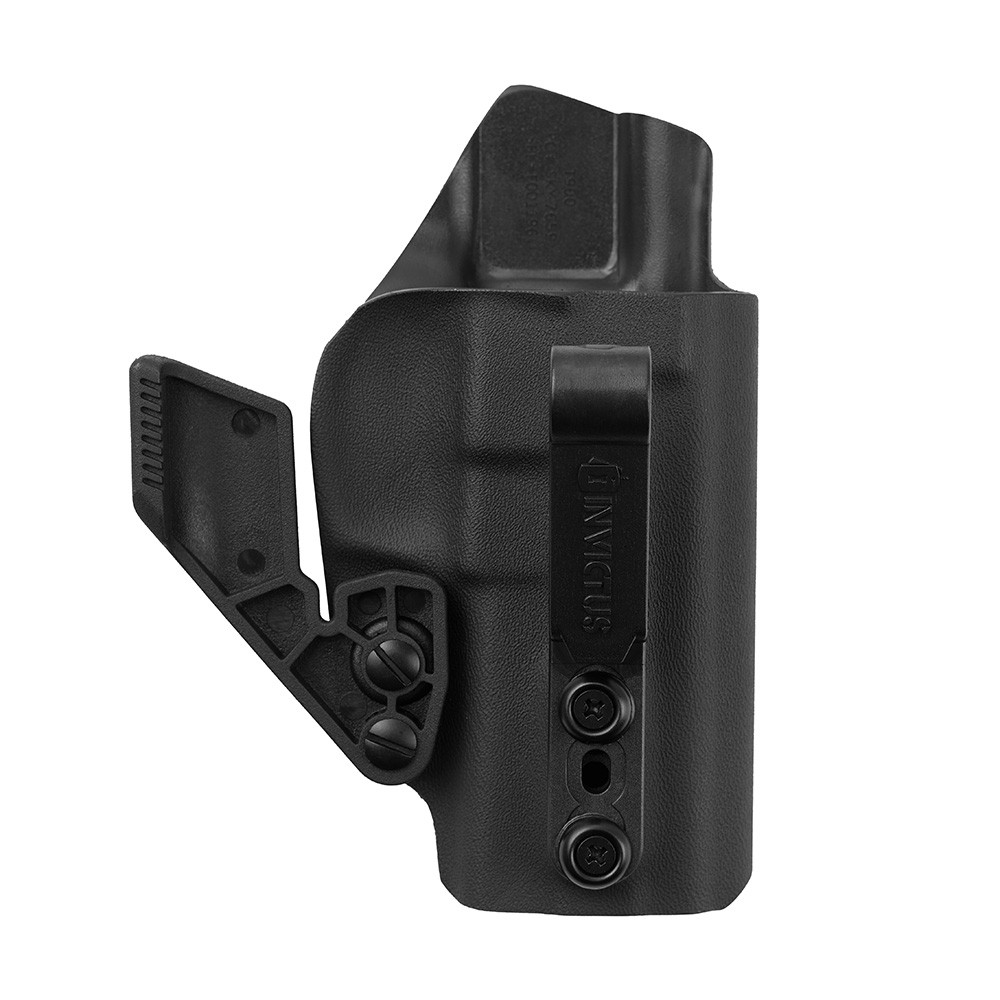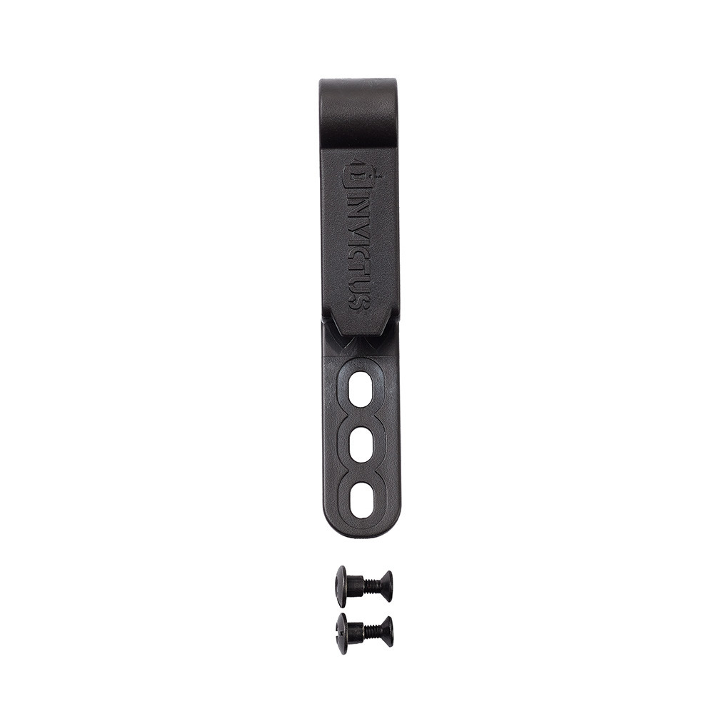 O Kydex® não deforma, não propaga chamas e é extremamente resistente ao impacto. Com duas opções de clip, um em polímero (POM), muito resistente, e outro clip metálico em aço inoxidável, com ajuste de ângulo. Ambos os clips possuem regulagem de altura.