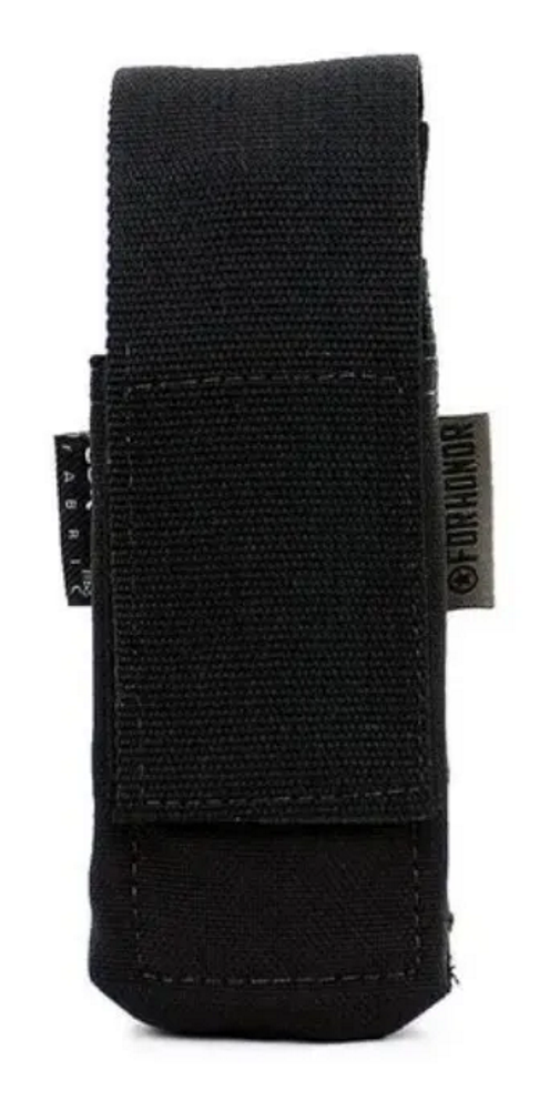 Confeccionado em Cordura®1000 DENIER, possuí Aba em fita 100% poliamida de 50 mm para fechamento e regulagem de altura sobre a lanterna com fechamento em Velcro 50 mm.