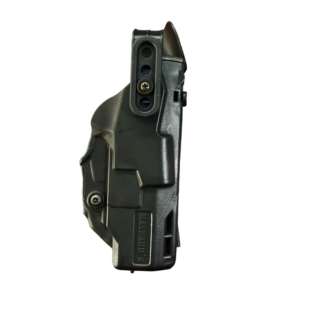 Com o saque rápido e retenção tanto ativa como passiva, sendo acionada pelo polegar na hora do saque, sendo o diferencial de ser o mais rápido do mercado Brasileiro, desenvolvido para vantagem em combate. Com a eficiência do melhor polímero que tem no mercado, o coldre tem a resistência mecânica necessária para ações táticas, civis e militares que demandam a extrema funcionalidade do nosso produto.