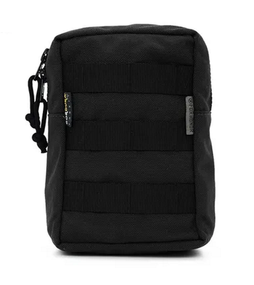 Bolso Horizontal (Porta Objetos) Confeccionado em CORDURA® 1000 Denier, zíper Vislon N.5 fixo, texturizado de poliéster com dentes e terminais de Poliacetal Injetado, 2(dois) cursores (ambidestro) e puxadores injetados ZAMAC com 2 cordões de 19cm em Poliéster amarrado a ponta.