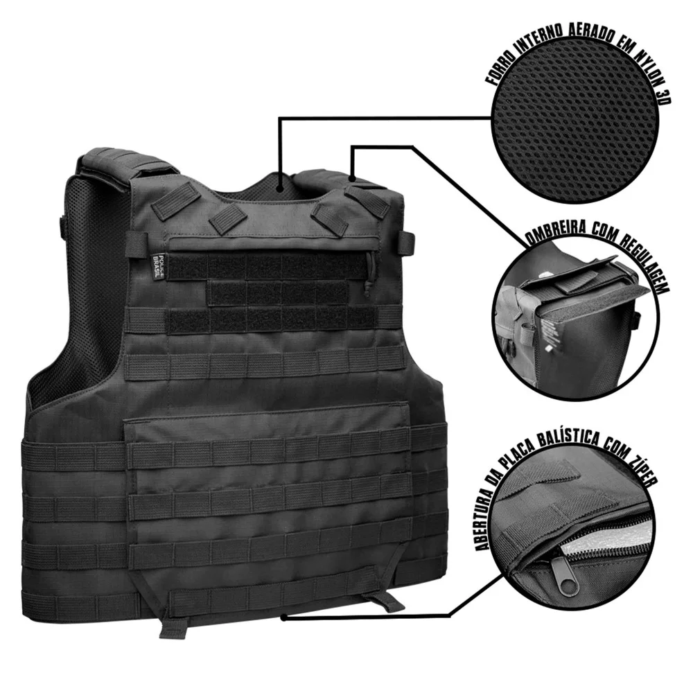 O colete modelo POLICE BRASIL MD 03 Foi Desenvolvido no material RIPSTOP com HIDRO repelência e resinado para proteção dos raios UVA e UVB evitando ao máximo que o equipamento queime no sol retardando a mudança de cor do equipamento. Feito para os Profissionais de Segurança que Desejam uma capa de colete acessível e com grande qualidade em sua matéria prima e acabamento. A capa de colete possui um design moderno , fugindo do tradicional e zelando pela boa apresentação do operador . No seu Forro Interno Possui Tecido NYLON 3D que Ajuda e Elimina o Aumento da Temperatura Corporal do Operador. Possui elásticos na retaguarda do colete , para facilitar nas posições de tiro e proteger o operador de possíveis problemas de coluna ao longo dos anos. A capa de colete possui um bolso frontal com ziper para guardar equipamentos.